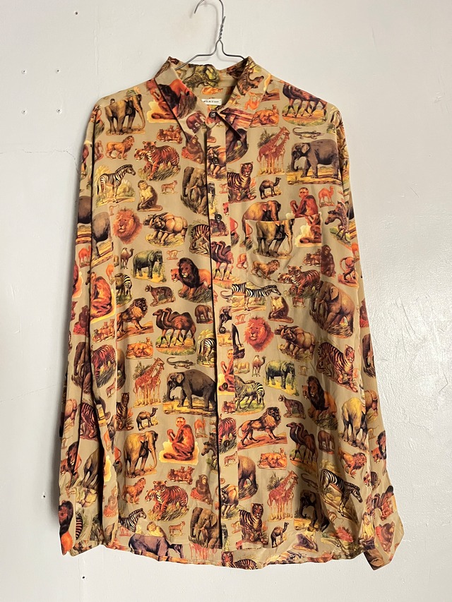 [Note] 生地がシルク100%でできているため、着心地が良く、光沢感があり、高級感のあるシャツとなっています。デザインとしては野生の動物が描かれていて、このシャツ一枚で存在感を出してくれるので、個性的なファッションスタイルが好きな方にはおすすめのアイテムとなっております。 H-4099 [Condition] B A : 未使用品、デッドストック品、又は使用感やダメージがほとんどないUsed品 B : 若干の使用感があるUsed品 C : 汚れやダメージが目立つUsed品 [Size] サイズ表記 L 着丈 78cm 肩幅 52cm 身幅 60cm 袖丈 65cm [Color] ベージュ [Country] Made In China [Material] シルク 100% [Model] 175cm [Attention] ※掲載されている商品は全て1点もののUSED・VINTAGE商品です。購入後の返品、交換は受け付けておりません。 ※中古の特性上、写真と表記以外の傷や汚れがある場合がございます。 ※撮影時の光の環境や、ご使用のモニターによって実際の色と多少異なる場合がございます。 ※平置き採寸のため若干の誤差はご了承ください。 ※店頭でも同日同時間に販売開始いたしますので万が一時間差で売り切れてしまった場合はキャンセルとなりますので予めご了承ください。 ※銀行振込、コンビニ・pay-easy払いのお客様に関しては、在庫確保の旨を別途メールにてご連絡いたしますので、在庫確保のご連絡後のご入金、お支払いをお願いいたします。万が一、支払いを済ませてしまい在庫が確保出来なかった場合は、返金処理をさせていただきます。予めご了承ください。 その他商品に関するお問い合わせはメール、又はDMにてご連絡ください。