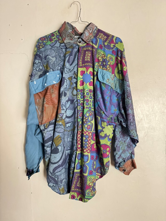 [Note] 異なる柄や色味を大胆に組み合わせた、パッチワークデザインのシャツ。フラワーや抽象柄など複数のテキスタイルをミックスし、一枚で主役になる存在感のある一着です。古着らしい個性を楽しめるアイテムです。 H-4095 [Condition] B A : 未使用品、デッドストック品、又は使用感やダメージがほとんどないUsed品 B : 若干の使用感があるUsed品 C : 汚れやダメージが目立つUsed品 [Size] サイズ表記 無し 着丈 78cm 肩幅 60cm 身幅 63cm 袖丈 54cm [Color] 総柄 [Country] 表記無し [Material] ウール 60% アクリル 40% [Model] 191cm [Attention] ※掲載されている商品は全て1点もののUSED・VINTAGE商品です。購入後の返品、交換は受け付けておりません。 ※中古の特性上、写真と表記以外の傷や汚れがある場合がございます。 ※撮影時の光の環境や、ご使用のモニターによって実際の色と多少異なる場合がございます。 ※平置き採寸のため若干の誤差はご了承ください。 ※店頭でも同日同時間に販売開始いたしますので万が一時間差で売り切れてしまった場合はキャンセルとなりますので予めご了承ください。 ※銀行振込、コンビニ・pay-easy払いのお客様に関しては、在庫確保の旨を別途メールにてご連絡いたしますので、在庫確保のご連絡後のご入金、お支払いをお願いいたします。万が一、支払いを済ませてしまい在庫が確保出来なかった場合は、返金処理をさせていただきます。予めご了承ください。 その他商品に関するお問い合わせはメール、又はDMにてご連絡ください。