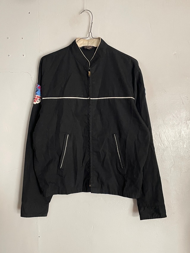[Note] ブラックボディに、ホワイトのパイピングデザインが施された、シアーズのジップジャケット。タグを見ると分かる通り、50〜60年代頃のアイテムだという事がわかります。一見シンプルなディテールですが、両袖にはクールなワッペンデザイン。良いアクセントになってくれています。軽い素材感なので、サラッとラフに着られるのも魅力的です。短丈めでありながら、身幅はたっぷりな今っぽいシルエット。ファッションの主役としてはもちろん、インナーとしても活躍してくれるアイテムです。 H-4111 [Condition] B A : 未使用品、デッドストック品、又は使用感やダメージがほとんどないUsed品 B : 若干の使用感があるUsed品 C : 汚れやダメージが目立つUsed品 [Size] サイズ表記 無し 着丈 60cm 肩幅 47cm 身幅 59cm 袖丈 63cm [Color] ブラック [Country] 表記無し [Material] 表記無し [Model] 183cm [Attention] ※掲載されている商品は全て1点もののUSED・VINTAGE商品です。購入後の返品、交換は受け付けておりません。 ※中古の特性上、写真と表記以外の傷や汚れがある場合がございます。 ※撮影時の光の環境や、ご使用のモニターによって実際の色と多少異なる場合がございます。 ※平置き採寸のため若干の誤差はご了承ください。 ※店頭でも同日同時間に販売開始いたしますので万が一時間差で売り切れてしまった場合はキャンセルとなりますので予めご了承ください。 ※銀行振込、コンビニ・pay-easy払いのお客様に関しては、在庫確保の旨を別途メールにてご連絡いたしますので、在庫確保のご連絡後のご入金、お支払いをお願いいたします。万が一、支払いを済ませてしまい在庫が確保出来なかった場合は、返金処理をさせていただきます。予めご了承ください。 その他商品に関するお問い合わせはメール、又はDMにてご連絡ください。