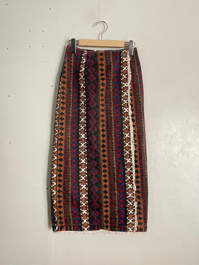 Old Ethnic Pattern Fringe Design Wrap Skirt