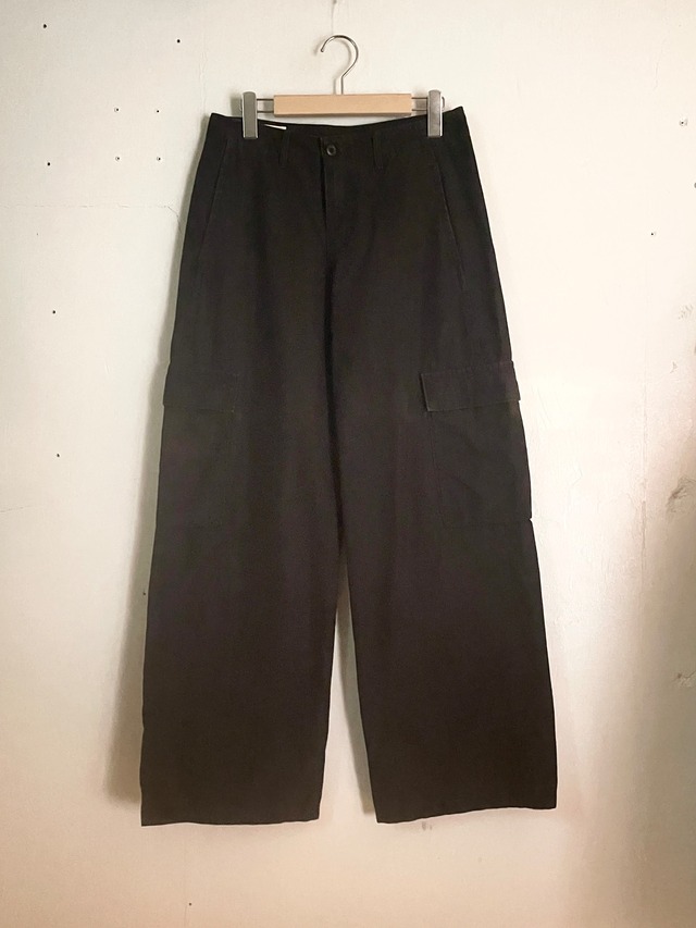 [Note] フロントのダブルボタン仕様、高めに設定されたウエスト位置、そして太もも部分のフラップポケットが特徴的なチェコ軍のカーゴパンツ。東欧ミリタリー特有の実用性と、どこか無機質で洗練された雰囲気を併せ持ったアイテムです。無地で癖のないデザインのため、幅広くおすすめできます。 H-4062 [Condition] B A : 未使用品、デッドストック品、又は使用感やダメージがほとんどないUsed品 B : 若干の使用感があるUsed品 C : 汚れやダメージが目立つUsed品 [Size] サイズ表記 無し ウエスト 96cm 総丈 98cm 股上 27cm 股下 62cm わたり幅 33cm 裾幅 20cm [Color] カーキ [Country] 表記無し [Material] 表記無し [Model] 183cm [Attention] ※掲載されている商品は全て1点もののUSED・VINTAGE商品です。購入後の返品、交換は受け付けておりません。 ※中古の特性上、写真と表記以外の傷や汚れがある場合がございます。 ※撮影時の光の環境や、ご使用のモニターによって実際の色と多少異なる場合がございます。 ※平置き採寸のため若干の誤差はご了承ください。 ※店頭でも同日同時間に販売開始いたしますので万が一時間差で売り切れてしまった場合はキャンセルとなりますので予めご了承ください。 ※銀行振込、コンビニ・pay-easy払いのお客様に関しては、在庫確保の旨を別途メールにてご連絡いたしますので、在庫確保のご連絡後のご入金、お支払いをお願いいたします。万が一、支払いを済ませてしまい在庫が確保出来なかった場合は、返金処理をさせていただきます。予めご了承ください。 その他商品に関するお問い合わせはメール、又はDMにてご連絡ください。