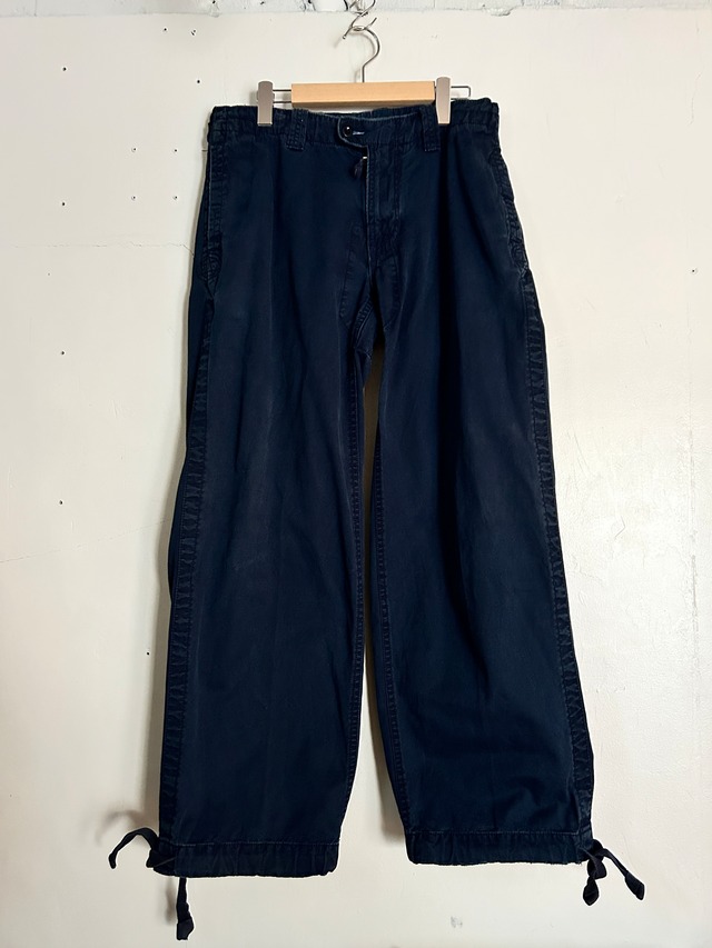 [Note] Polo Ralph Laurenのミリタリーテイストのコットンパンツ。程よくフェードしたネイビーカラーが無骨でクール。裾にはドローコードが施され、シルエットの調整が可能。ストレートからややワイドなラインなのでゆるっときれいなシルエットで、カジュアル&上品を兼ね揃えたラルフらしい極上の一本! H-4031 [Condition] B A : 未使用品、デッドストック品、又は使用感やダメージがほとんどないUsed品 B : 若干の使用感があるUsed品 C : 汚れやダメージが目立つUsed品 [Size] サイズ表記 なし ウエスト 41cm 総丈 103.5cm 股上 25cm 股下 73cm わたり幅 29cm 裾幅 23cm [Color] ネイビー [Country] Made in China [Material] コットン 100% [Model] 157cm [Attention] ※掲載されている商品は全て1点もののUSED・VINTAGE商品です。購入後の返品、交換は受け付けておりません。 ※中古の特性上、写真と表記以外の傷や汚れがある場合がございます。 ※撮影時の光の環境や、ご使用のモニターによって実際の色と多少異なる場合がございます。 ※平置き採寸のため若干の誤差はご了承ください。 ※店頭でも同日同時間に販売開始いたしますので万が一時間差で売り切れてしまった場合はキャンセルとなりますので予めご了承ください。 ※銀行振込、コンビニ・pay-easy払いのお客様に関しては、在庫確保の旨を別途メールにてご連絡いたしますので、在庫確保のご連絡後のご入金、お支払いをお願いいたします。万が一、支払いを済ませてしまい在庫が確保出来なかった場合は、返金処理をさせていただきます。予めご了承ください。 その他商品に関するお問い合わせはメール、又はDMにてご連絡ください。