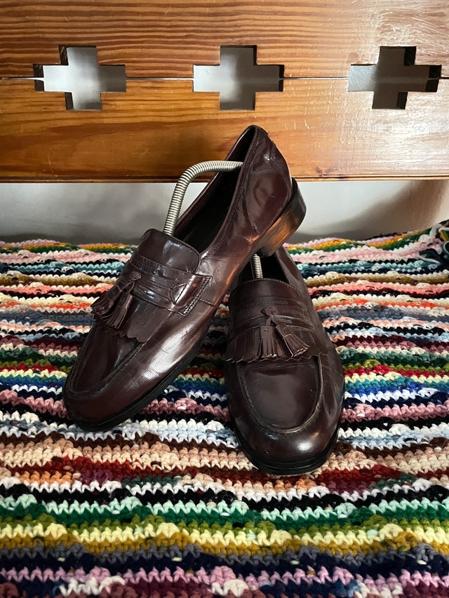 [Note] 上品なやや光沢感のあるブラウンカラーで、房飾りが良いアクセントになってくれている、タッセルローファー。ブランドはアメリカのフットウェアブランド”ナンブッシュ”。赤みがかったブラウンが絶妙に良い色味です。柔らかい上質なレザー。ソールの高さも丁度良く、履きやすい一足かと思います。多少の使用感などは見られるものの、ソールの減りなども少なくコンディションは◎です。 H-3860 [Condition] B A : 未使用品、デッドストック品、又は使用感やダメージがほとんどないUsed品 B : 若干の使用感があるUsed品 C : 汚れやダメージが目立つUsed品 [Size] サイズ表記 10 長さ(アウトソール)29cm 幅 10cm ヒール高 2.5cm [Color] ブラウン [Country] Made in India [Material] レザー [Attention] ※掲載されている商品は全て1点もののUSED・VINTAGE商品です。購入後の返品、交換は受け付けておりません。 ※中古の特性上、写真と表記以外の傷や汚れがある場合がございます。 ※撮影時の光の環境や、ご使用のモニターによって実際の色と多少異なる場合がございます。 ※平置き採寸のため若干の誤差はご了承ください。 ※店頭でも同日同時間に販売開始いたしますので万が一時間差で売り切れてしまった場合はキャンセルとなりますので予めご了承ください。 ※銀行振込、コンビニ・pay-easy払いのお客様に関しては、在庫確保の旨を別途メールにてご連絡いたしますので、在庫確保のご連絡後のご入金、お支払いをお願いいたします。万が一、支払いを済ませてしまい在庫が確保出来なかった場合は、返金処理をさせていただきます。予めご了承ください。 その他商品に関するお問い合わせはメール、又はDMにてご連絡ください。