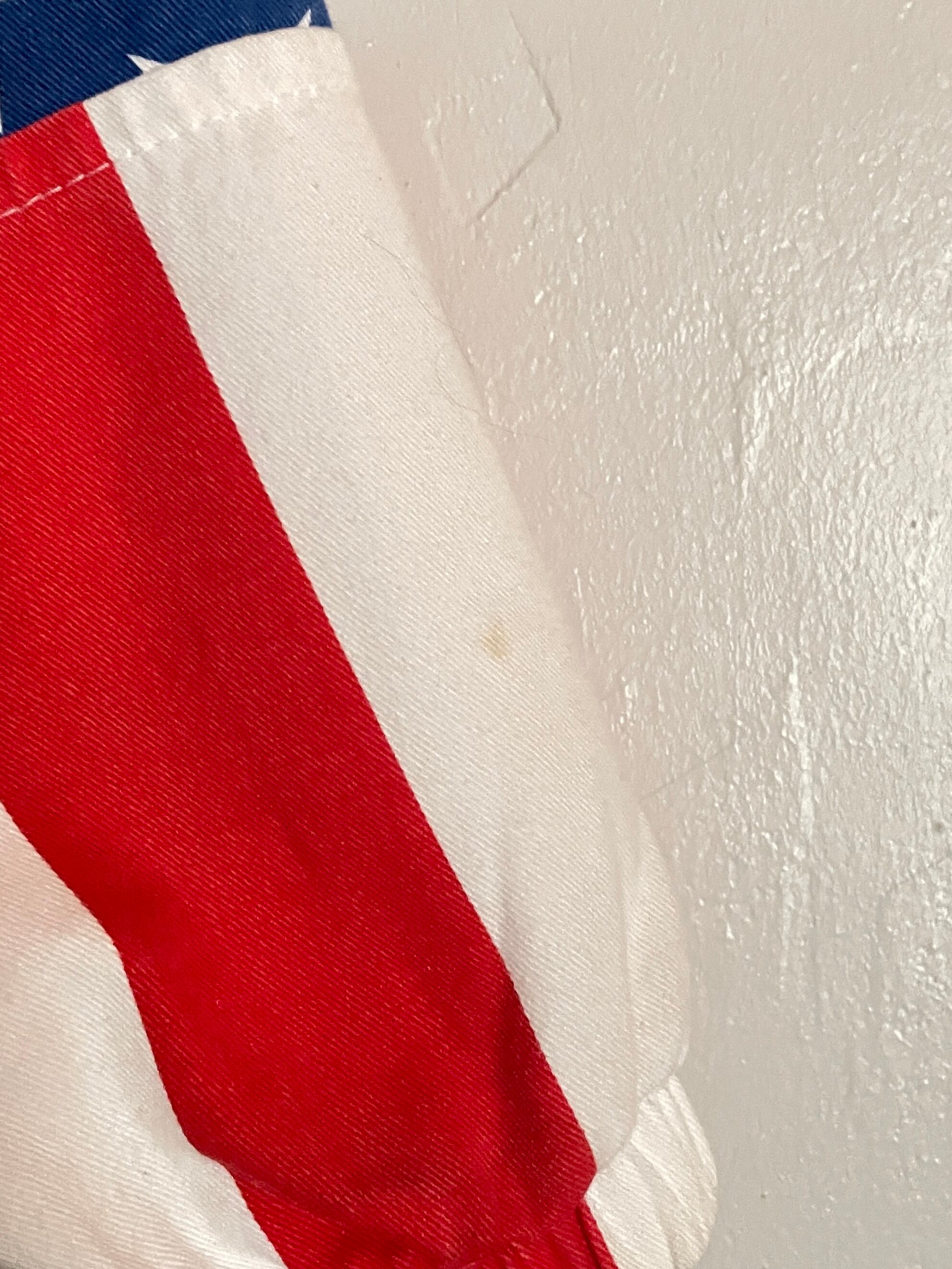 アメリカを代表するビールの銘柄、バドワイザーのロゴが全体を使ってプリントされた総柄ジャケット。赤と青を使った星やストライプがインパクトのある一着です。襟付きのフルジップ仕様、両脇にはポケットが付いて裏地も付いています。軽い着心地のコットン素材で、春にはぴったりの目を惹くライトアウターです。