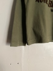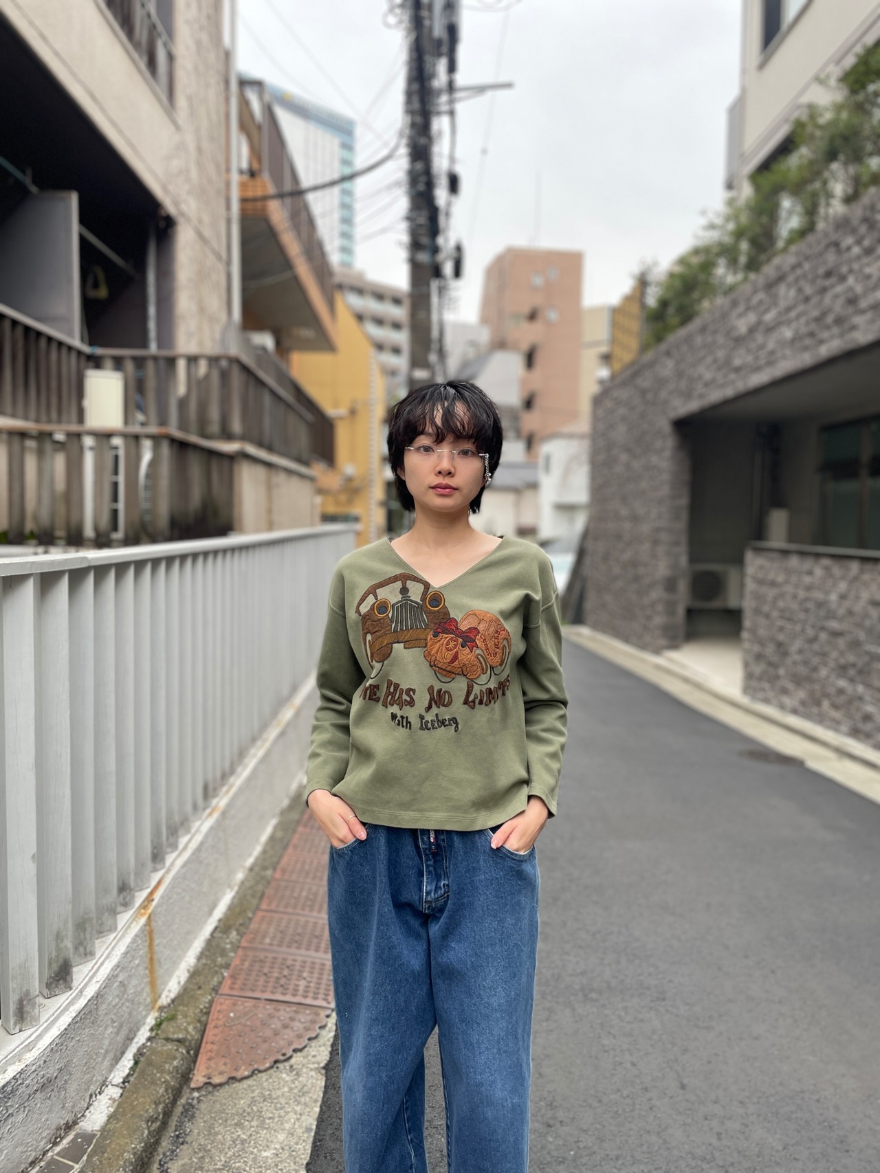カーキボディに、車の形をした可愛らしいキャラクターパッチデザインが施された、クロップド丈のロンT。可愛らしさのあるキャラクターデザインですが、色味は渋め。英文パッチの意味は”愛に限界はない”です。フワッとした質の良いコットン素材。深めなVネックなのもポイント。春には一枚でファッションの主役になってくれる一着です。