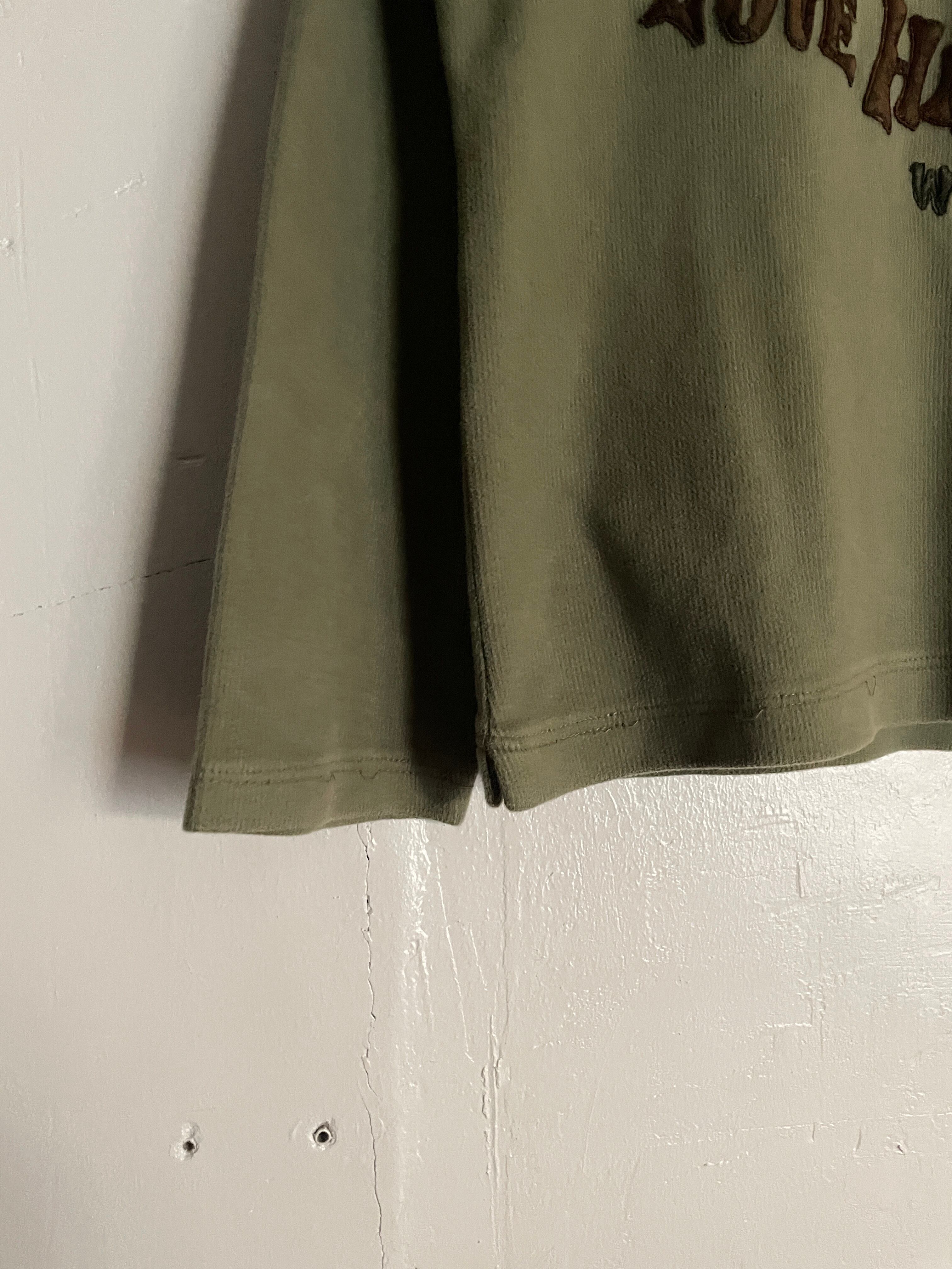 Old ICEBERG Khaki Wappen Design Cropped V Neck L/S T Shirt