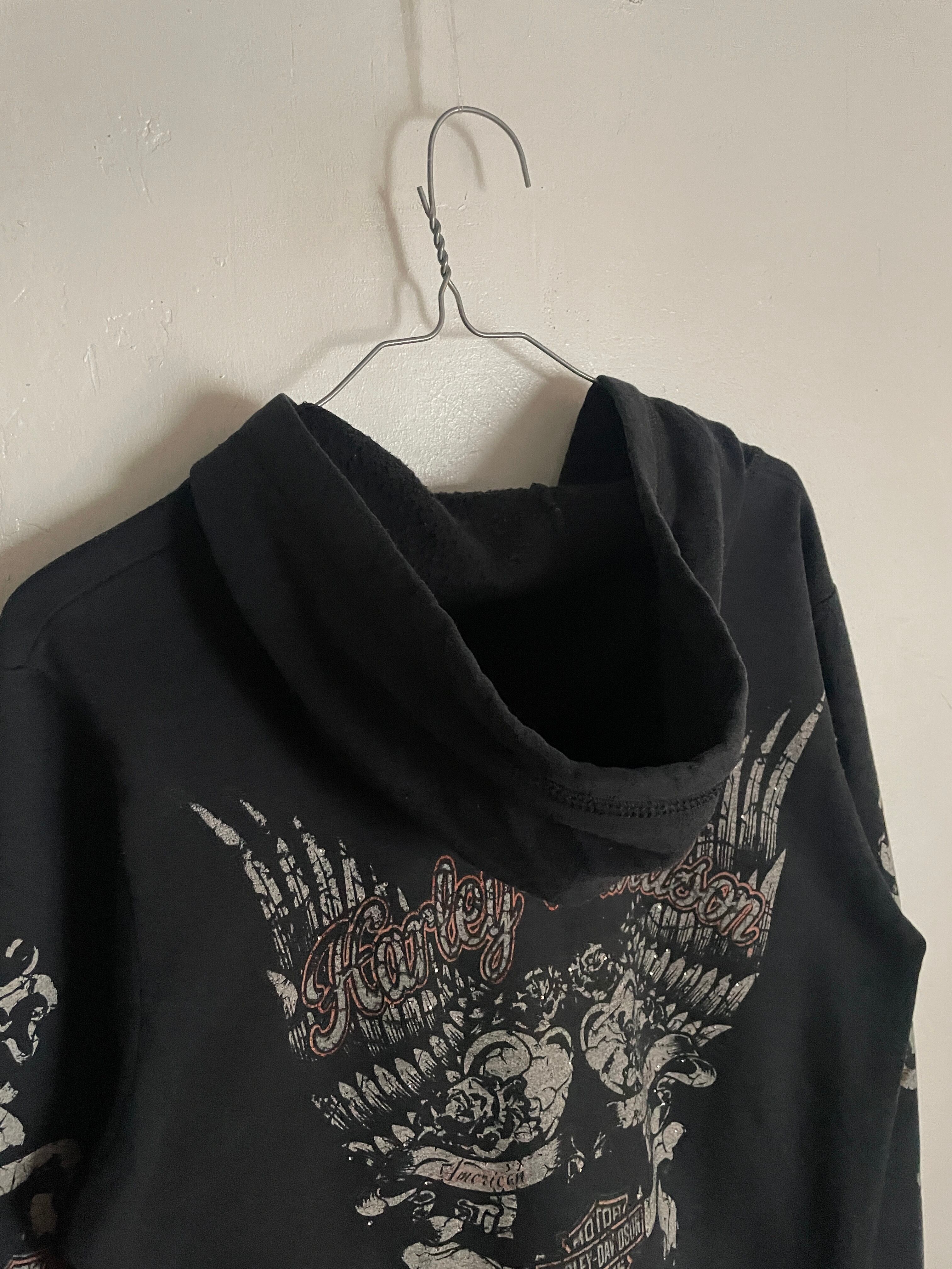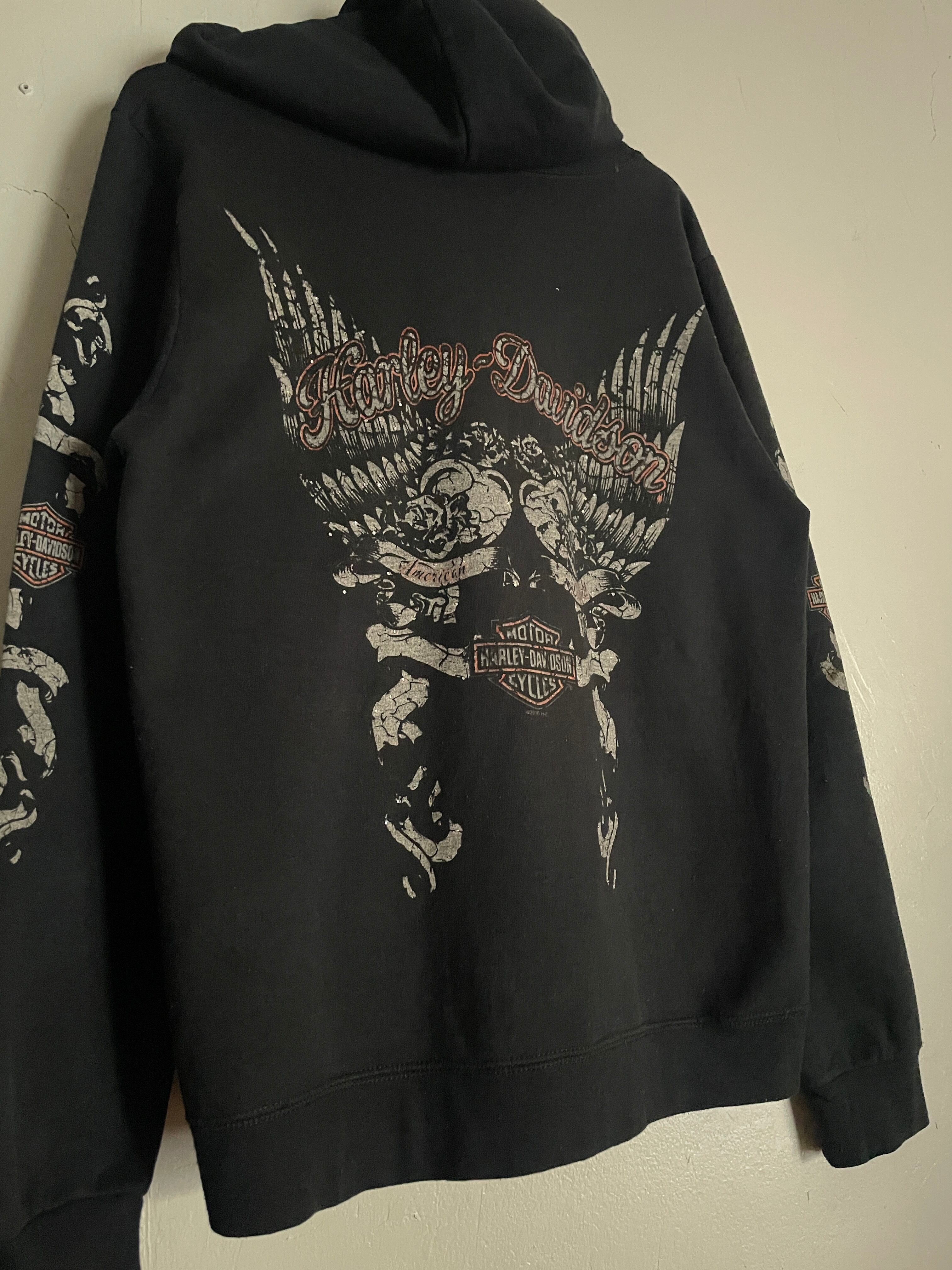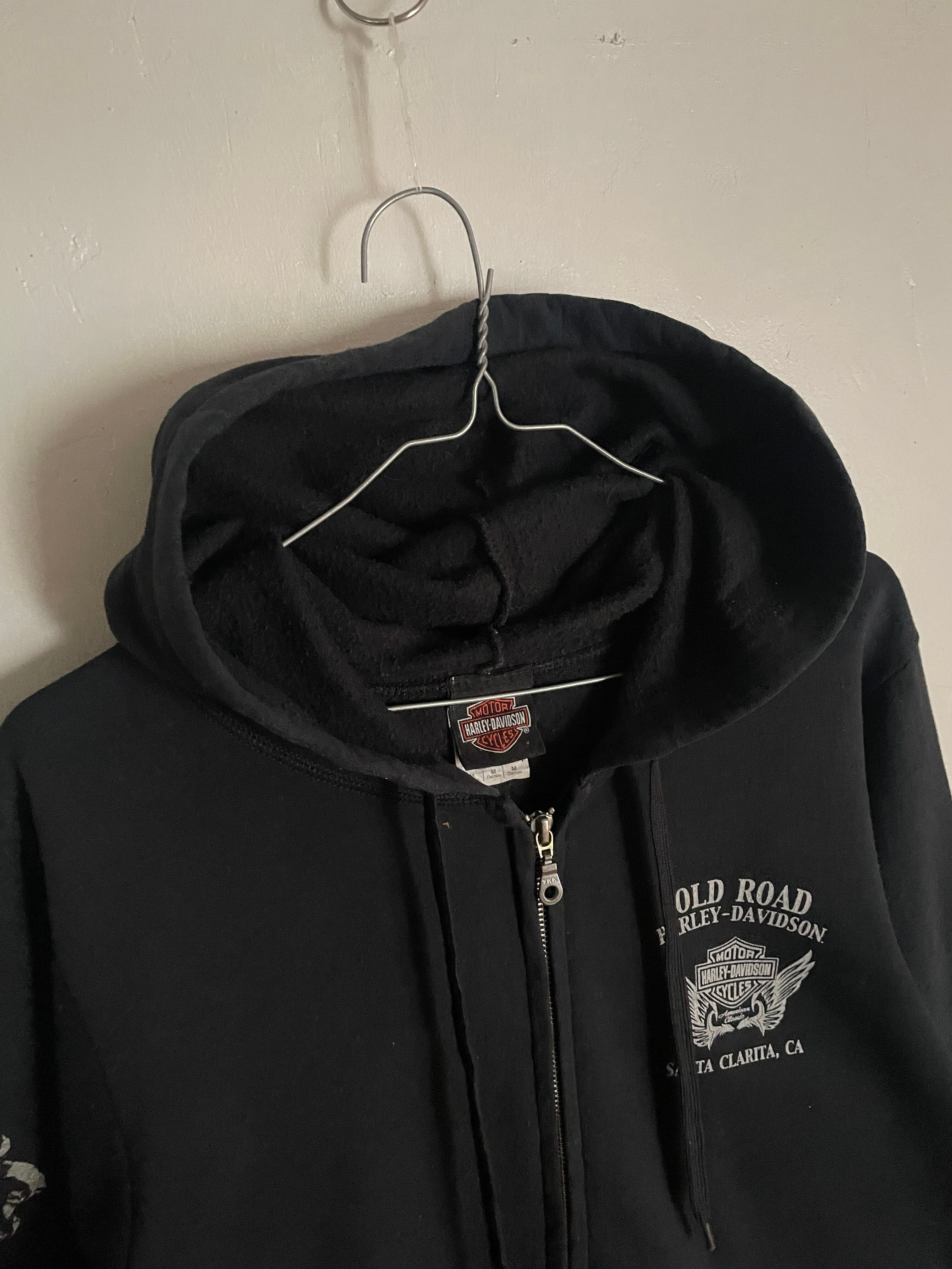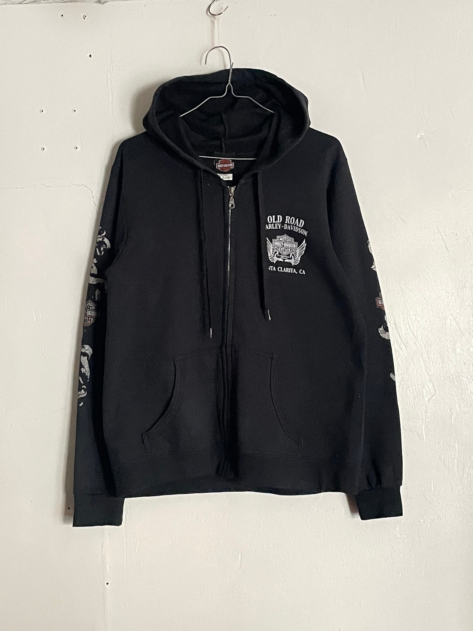 Old HARLEY-DAVIDSON Black Double Printed Zip Hoodie