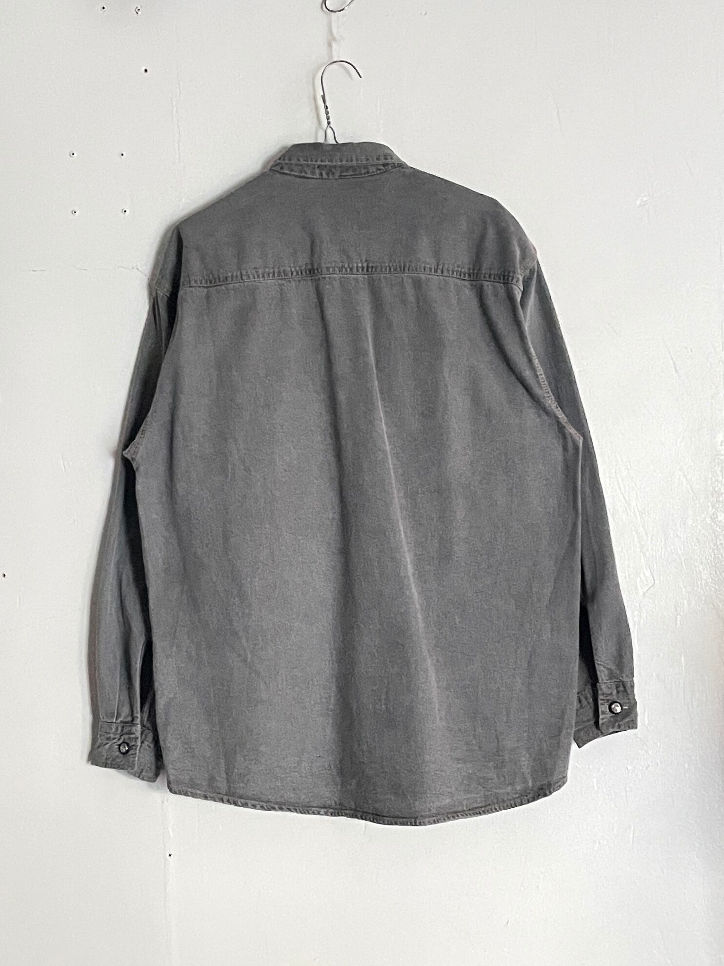 褪せたグレーボディで、ネック裏、袖口裏がペイズリー柄のデニムシャツジャケット。袖捲ってペイズリーを覗かせたりするのもお洒落かと思います。ステッチも効いていてグッドです。ゆったりとしたかなりのビッグサイズ。厚手過ぎない質の良いコットン素材なので、春にはラフに着られるかと思います。