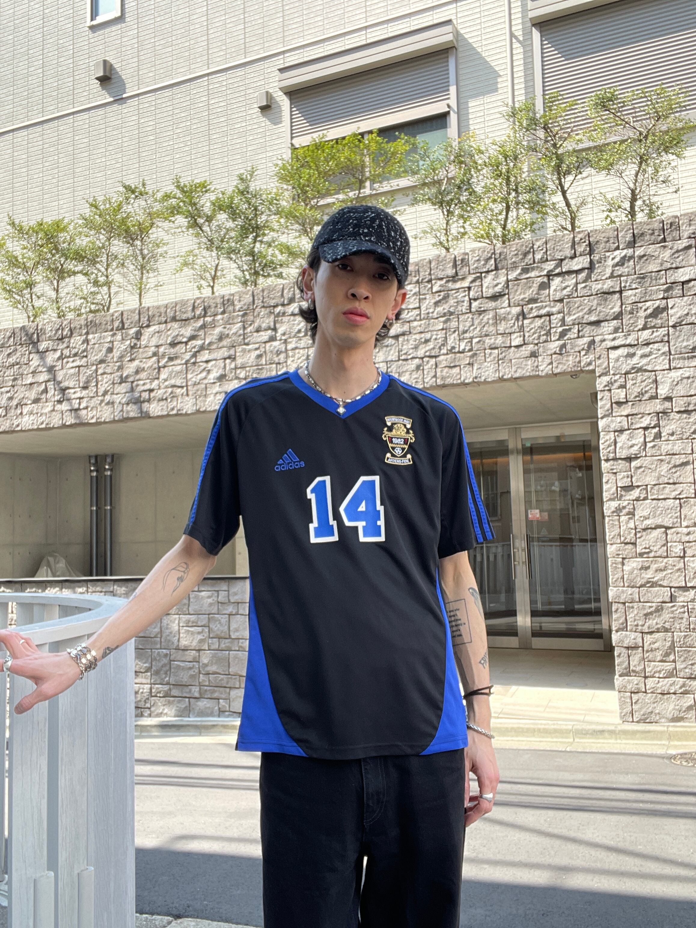 ブラックボディに、アメリカのテネシー州ブレントウットにあるのサッカークラブのエンブレム、背番号が施された、アディダスゲームシャツ。ブラックにブルーの組み合わせは抜群にかっこいいです。マイナーなチームなのが逆にツボ。背番号は14番でダブルプリントになってます。Vネックで、大き過ぎず、小さ過ぎないサイズ感。ゲームシャツは春夏に向けて一着は持っておきたいアイテムです。
