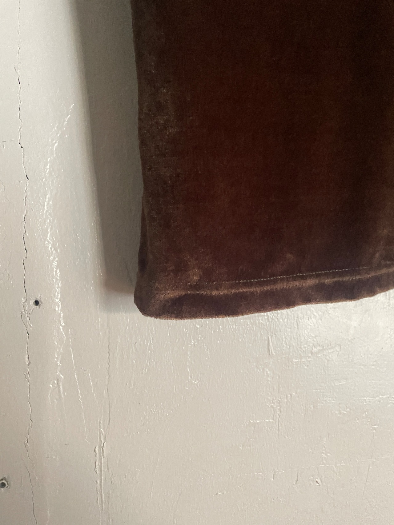 Old Khaki×Brown Line Design V Neck Velour Tops