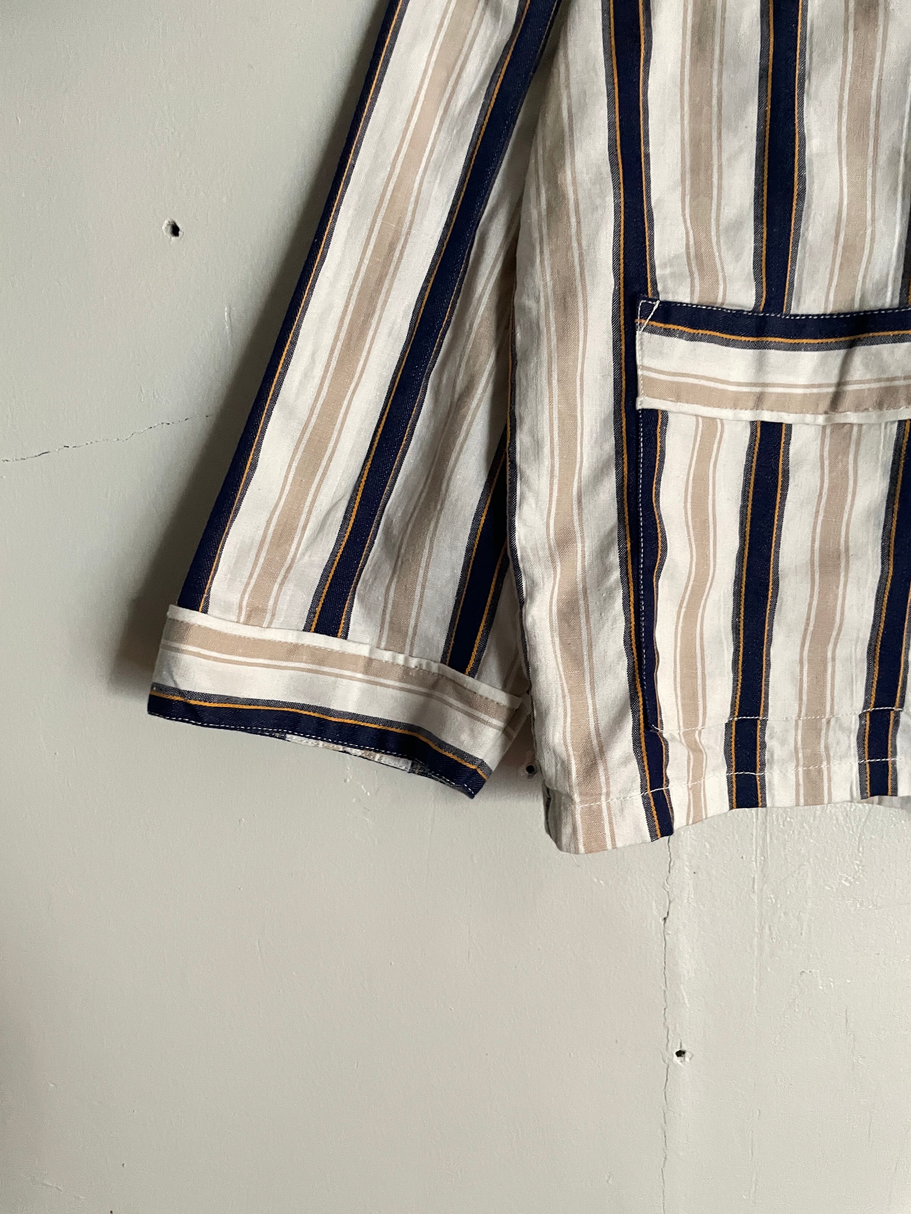マルチカラーな、太めのストライプデザインが施された、パジャマシャツ。素晴らしい配色で、パジャマシャツっぽくないデザインが逆に良い。パジャマシャツはファッションに取り入れる事によって、良い抜け感を作ってくれるお洒落アイテムです。デニム、スラックスなど幅広いボトムスとの相性抜群の一着です。大き過ぎず、小さ過ぎないグッドなサイズ感です。