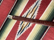光沢のあるブラウンカラーに、雰囲気のあるクロコダイル柄が魅力的な、型押しレザーベルト。傷が入ったようなデザインがクールです。ややゴールドがかったバックルからは高級感もしっかりと感じられます。太さも丁度良く、程良い長さ。これだけ雰囲気のあるベルトなので、ベルトを見せるようなファッションで楽しんでも良さそうです。