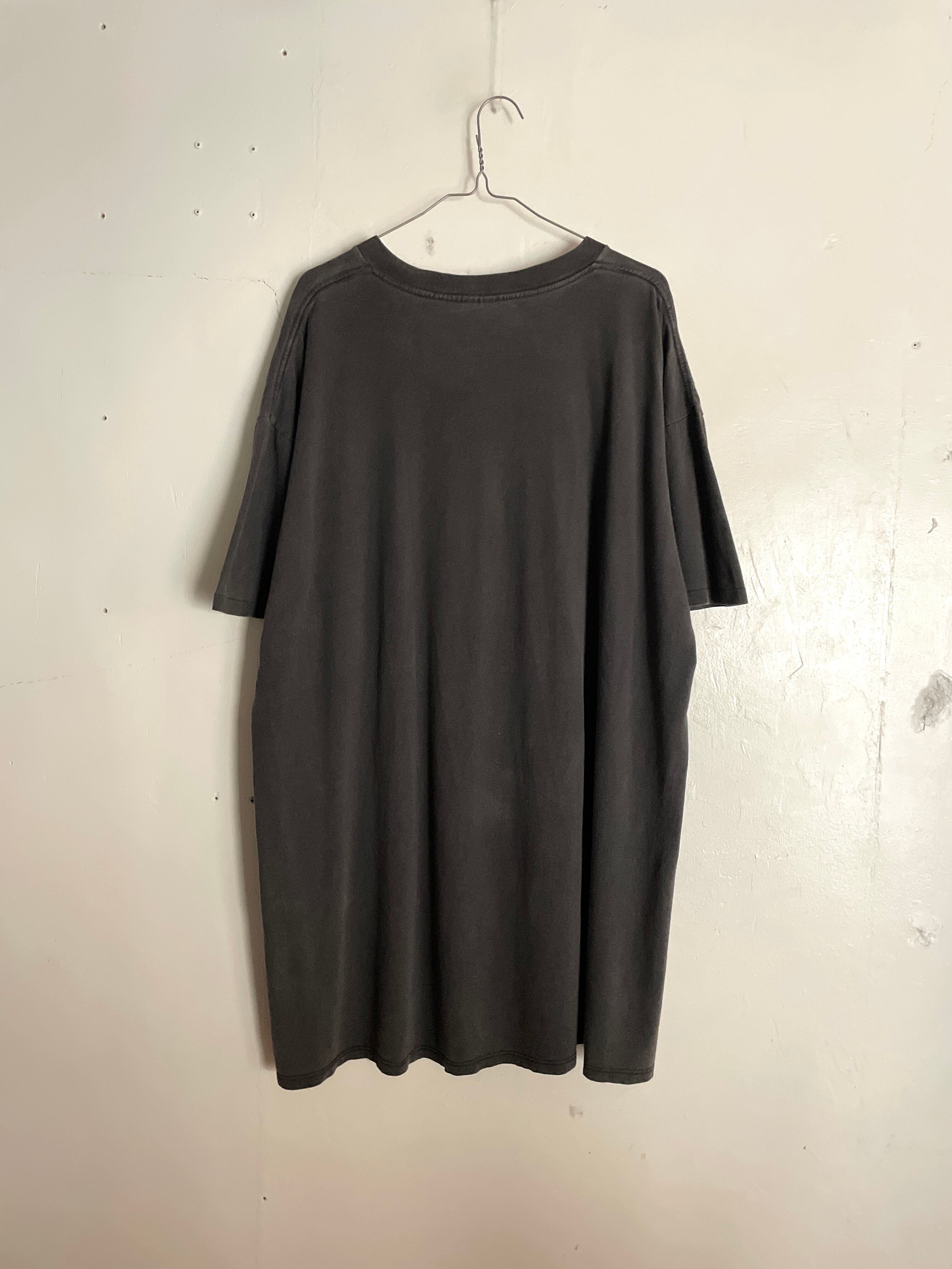 褪せたブラックボディにハートの手書き風プリント、なによりもかなり長い丈感のオーバーサイズが特徴的なTシャツ。コットン100%ボディで袖口はシングルステッチと、しっかり古いボディが使われているのもポイントです。男性がルーズに着こなすのも、女性がワンピースのように着てみるのも良さそうなイレギュラーアイテム。