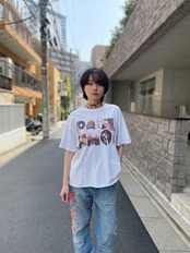 アメリカのシンガーソングライター”ポール・サイモン”の99年ツアープリントTシャツ。前面はポールサイモンのネームプリントに、それぞれサイモンのフォトプリントが施されています。後面は年代ごとに別れた、サイモンのフォトプリント。ユニークなプリントで、両面共にクールなデザインになっています。今の時期には一枚で着たいお洒落なTシャツになっています。女性の方はもちろん、男性の方でも短丈めで着ると、今っぽいシルエットになってかっこいいかと思います。しっかりと99年のコピーライト入りです。