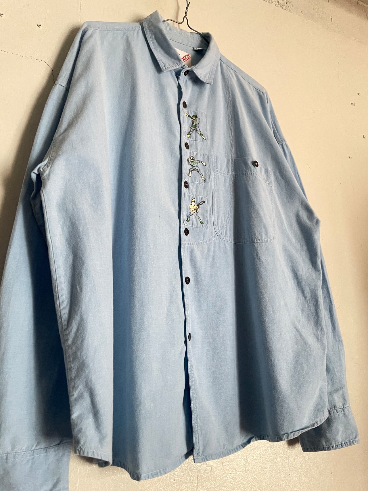 Old GOOUCH Light Blue Embroidery Design Cotton L/S Shirt