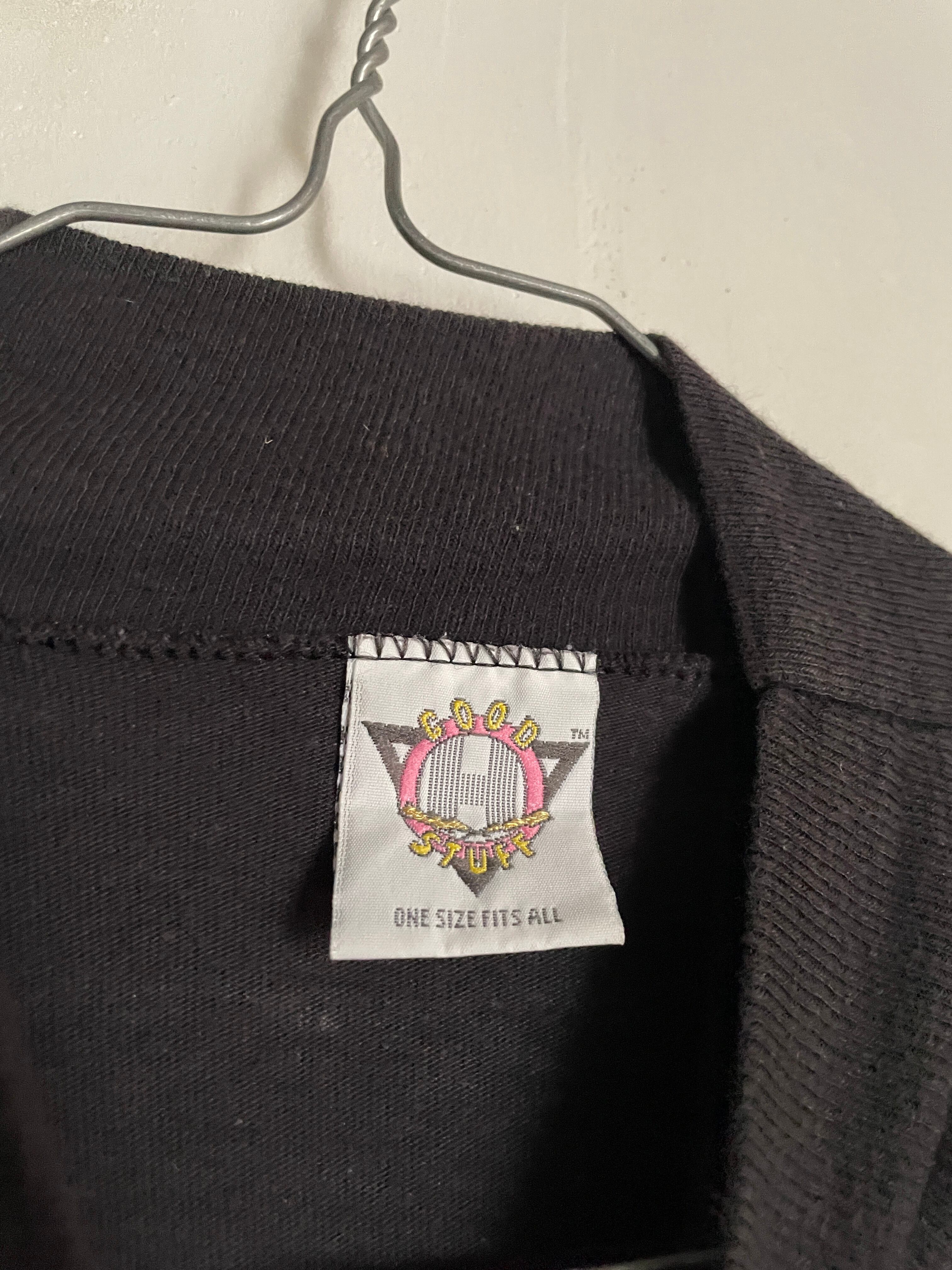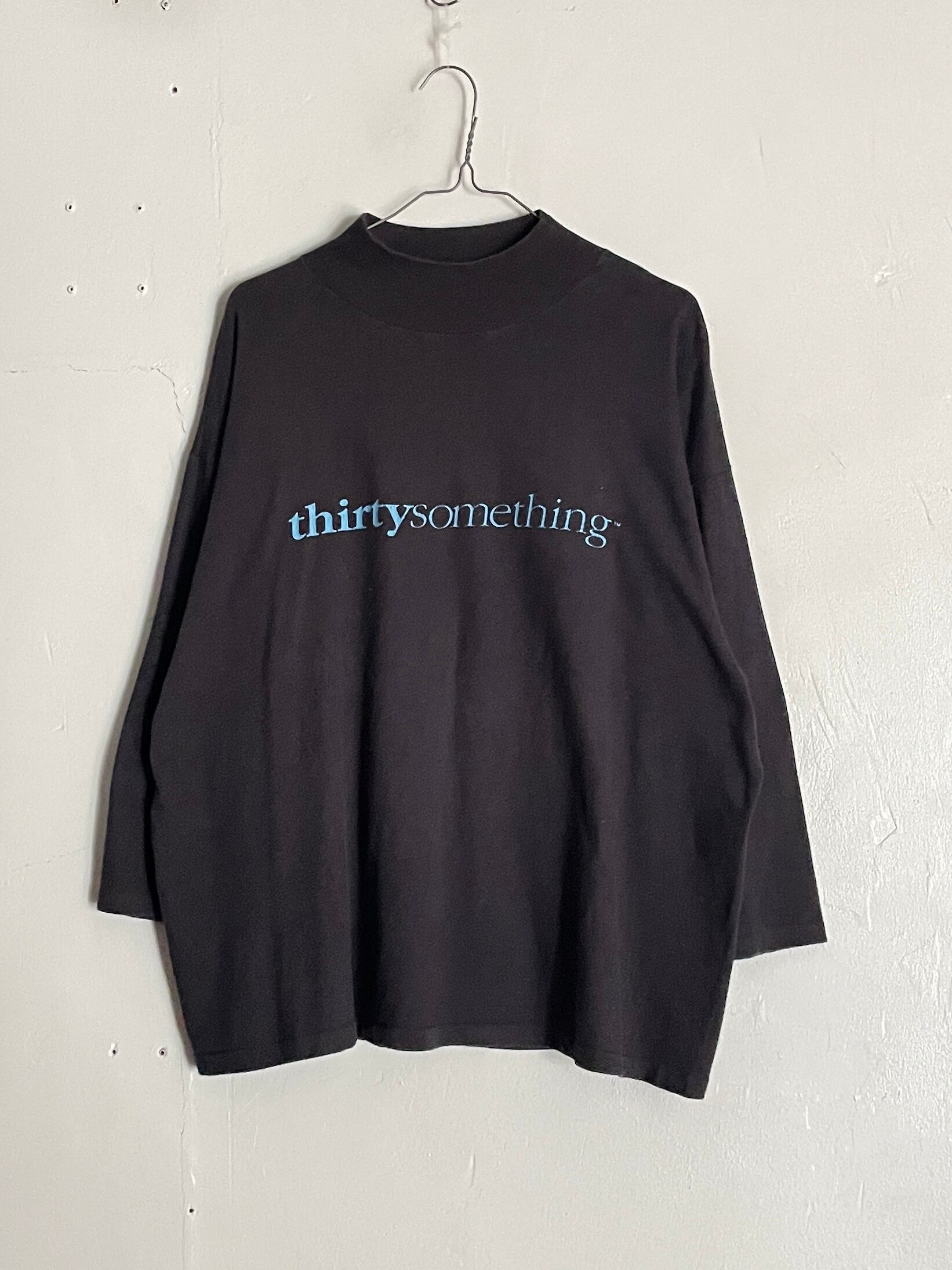 フェード感のあるブラックボディに、アメリカで87年から91年にかけて、放送されていたテレビドラマ”サーティサムシング”のネームプリントが施された、7部丈モックネックTシャツ。邦題は”ナイスサーティーズ”。ライトブルーのプリントがグッド。丈感も今っぽい短丈めで、身幅はたっぷり。モックネックで7部丈なのも珍しいです。首長はそこまで激しく無いので、かなり使い勝手の良さそうな一着。USA製なのもポイントの一つです。