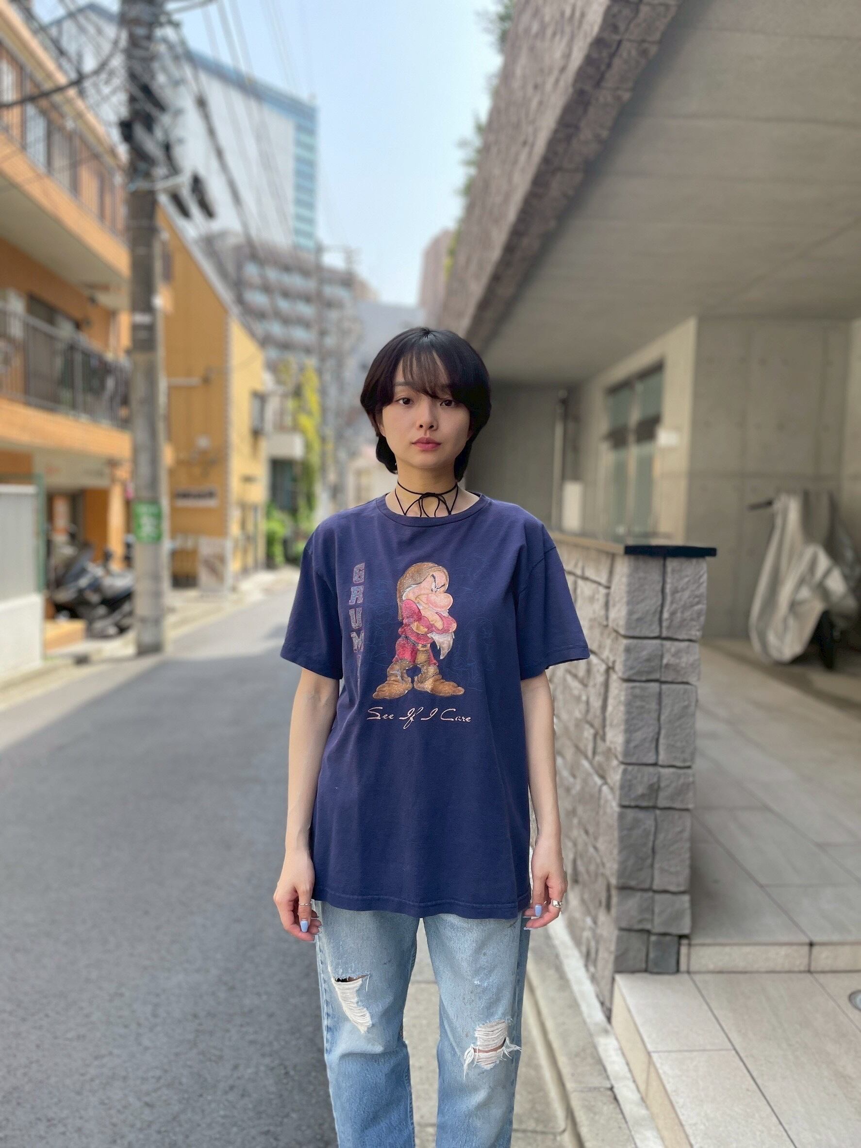 褪せたパープルボディに、映画白雪姫に登場する7人の小人”グランピー”が両面プリントされたTシャツ。常に不機嫌で怒っているのがグランピーの特徴です。ディズニーらしさのあるラメプリント。よく見ると、他にも3匹のグランピーがさりげなくプリントされています。バックには後ろから見たグランピープリント。コミカルで遊び心が感じられます。笑 大き過ぎず、小さ過ぎないサイズ感なので、男女共におすすめしたいTシャツです。