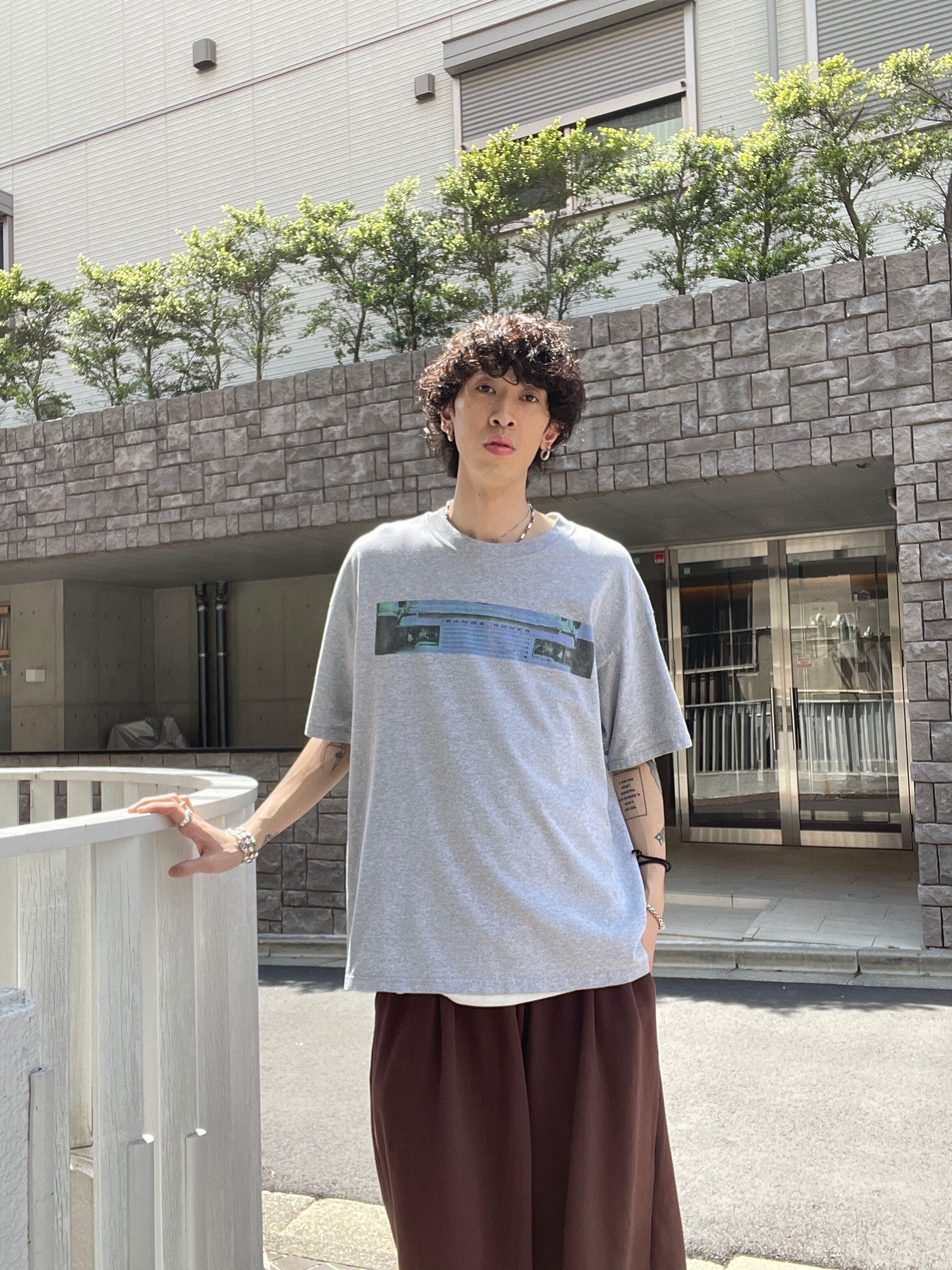 グレーボディに、イギリスのランドローバー社が製造する車種の一つ”レンジローバー”のプリントが両面に施されたTシャツ。横長でコンパクトめなプリントがお洒落。レンジローバーのヘッドライト部分が雰囲気のある配色によってプリントされています。ゆったりとしたサイズ感で、男性の方はもちろん、女性の方も大きめで着たら可愛らしいかと思います。
