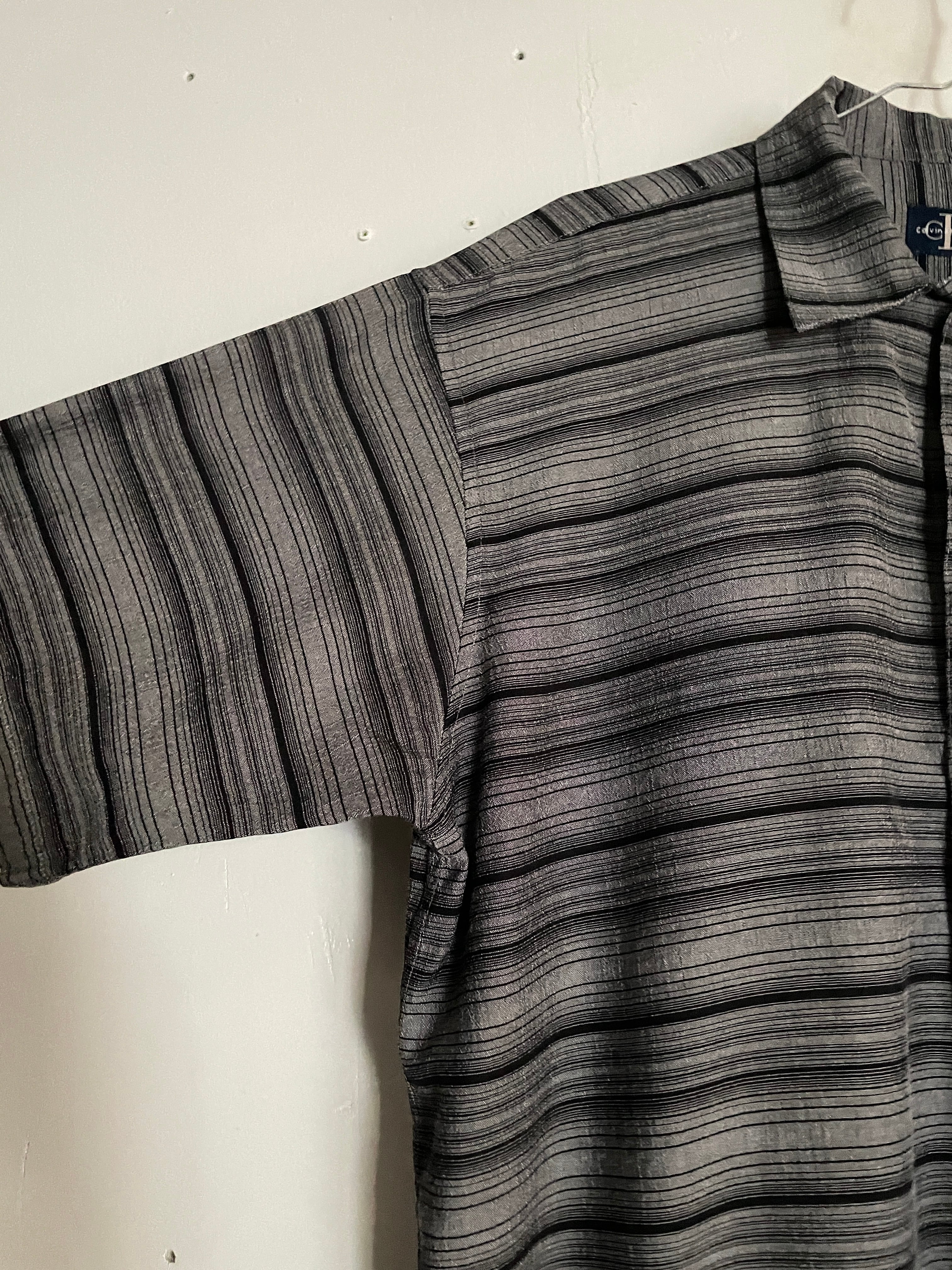サラッとしたグレーボディに、太さの違ったラインデザインが施された、カルバンクラインジーンズのシャツ。主張の激し過ぎないデザインで、使い勝手の良さそうな一着です。軽くて着やすいコットン素材で、今の時期には涼しげに着られるシャツかと思います。