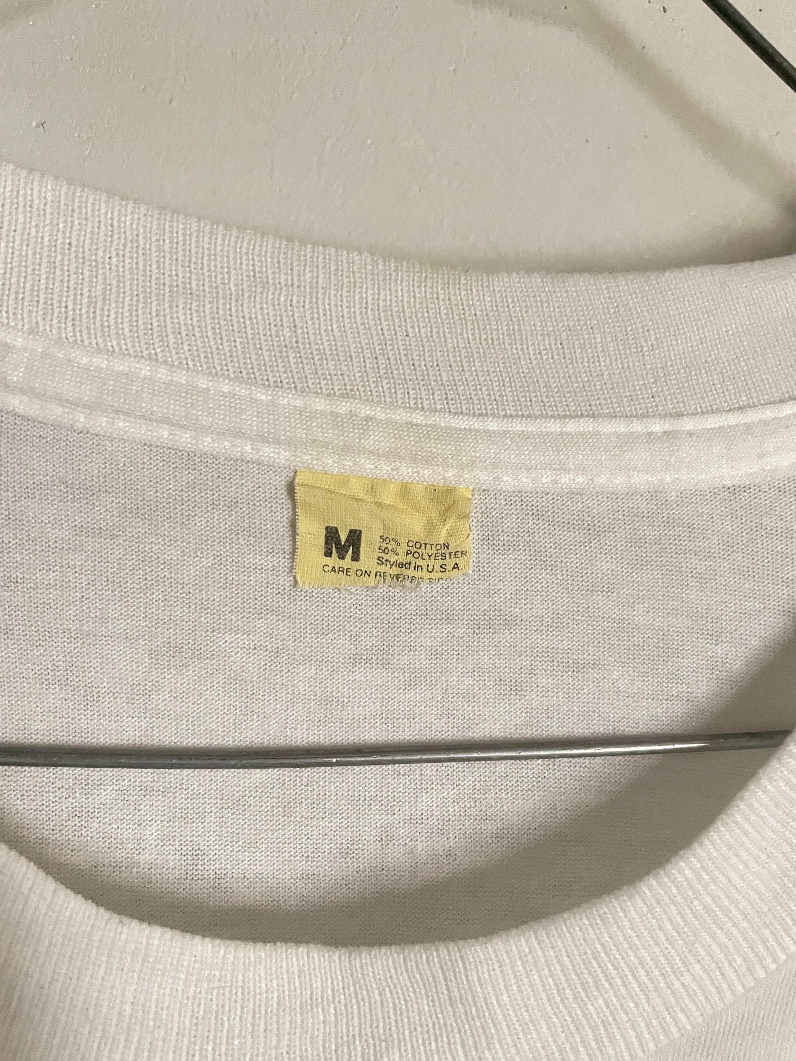 綺麗な女性のアップ写真がインパクトのある、フォトプリントTシャツ。女優さんか歌手か、誰なのかは不明ですが、めちゃめちゃ美人さんです。タグが切れてしまっていますが、おそらく80年代頃のスクリーンスターズ。袖口、裾はシングルステッチです。サイズ表記はMですが、XLくらいのゆったりとしたサイズ感です。右袖ぐりと左肩に小さなダメージが見られますがあまり気にならないかと思います。