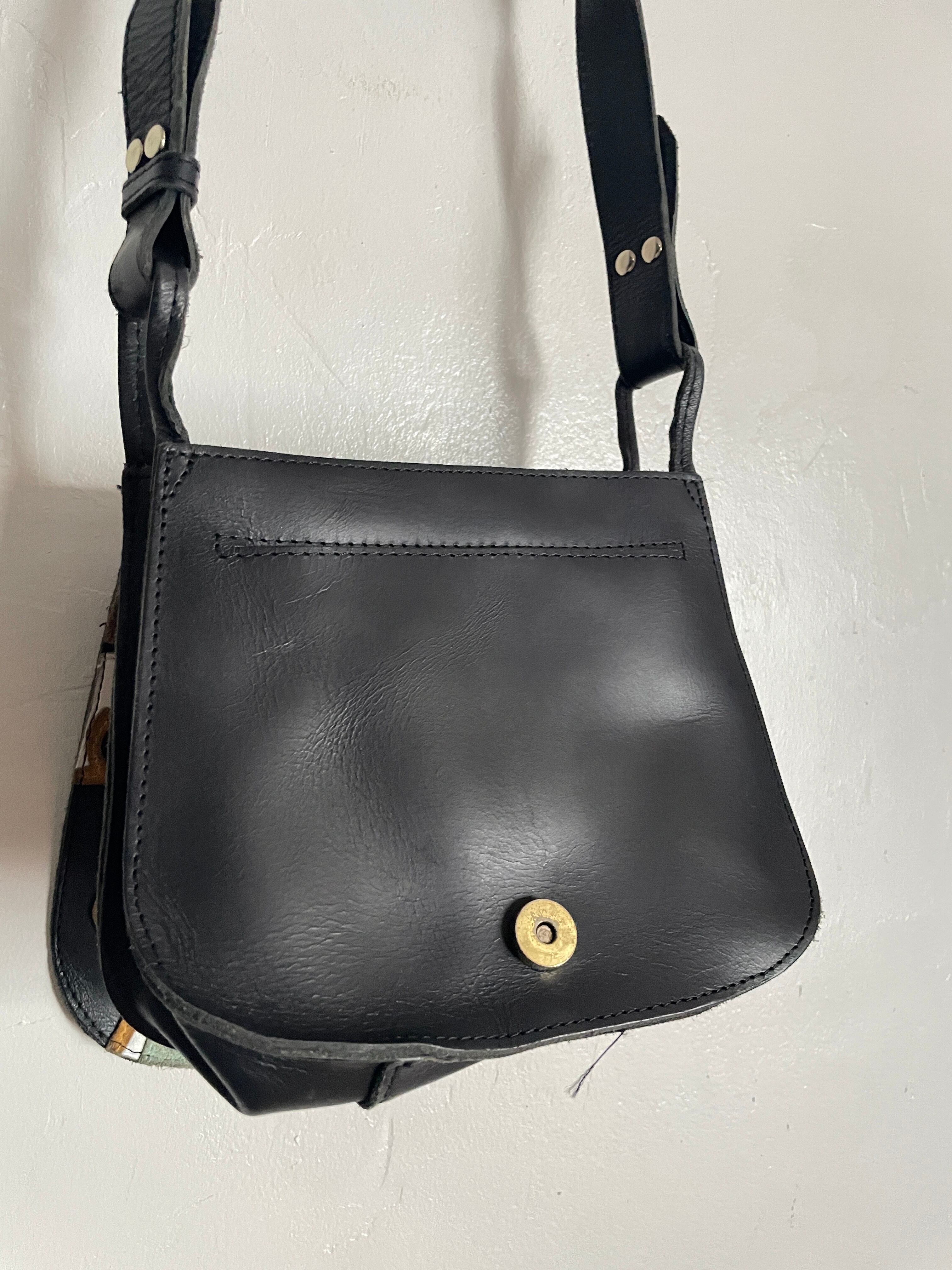 Old Patchwork Pattern Design Black Leather Shoulder Bag