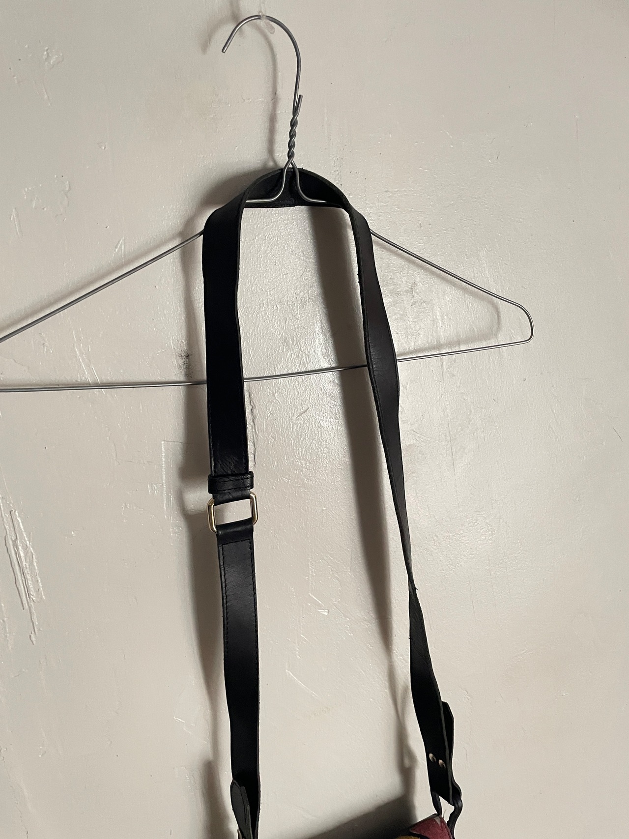 ブラックレザーをベースに、お洒落なスエードレザーの柄がパッチワークされたショルダーバッグ。ウエスタンな雰囲気の漂う珍しいデザインになっています。コンパクトめなサイズ感でありながらポケットは豊富。使い勝手の良さそうなバッグです。質の良いしっかりとしたレザー素材。ファッションの差し色にも使えそうな、魅力的なショルダーバッグです。