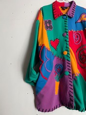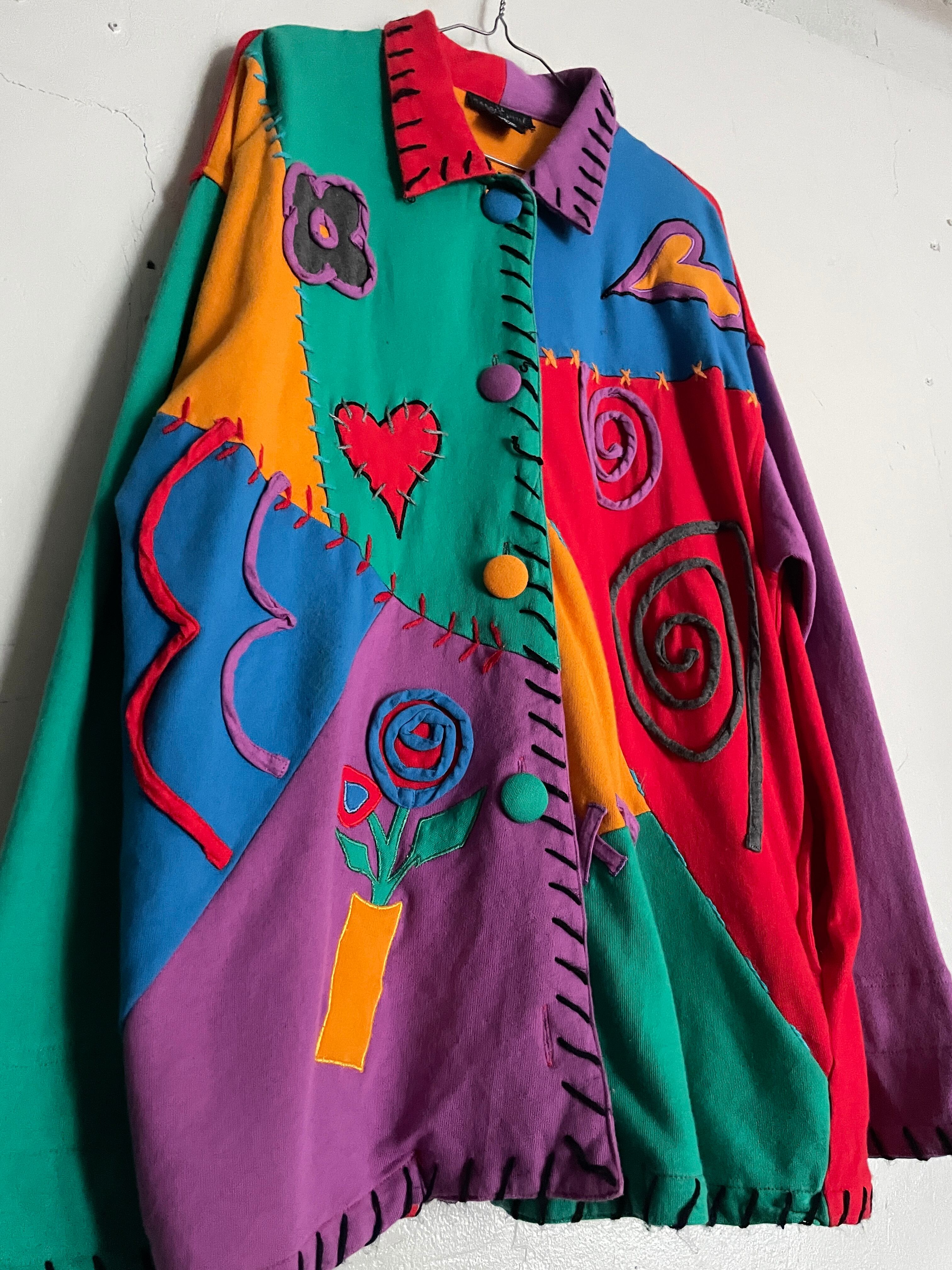 カラフルなボディに、花やハートなど可愛らしい刺繍が施された、スウェットジャケット。ハンドメイド感のある面白味が感じられる一着。このタイプでポケット付きなのは嬉しいです。バックには一切刺繍がないのも、メリハリがあってグッドです。フワッとした質の良いコットン素材なので、今の時期にはラフに着られるのも魅力的です。男女共にファッションの主役になってくれる一着です。