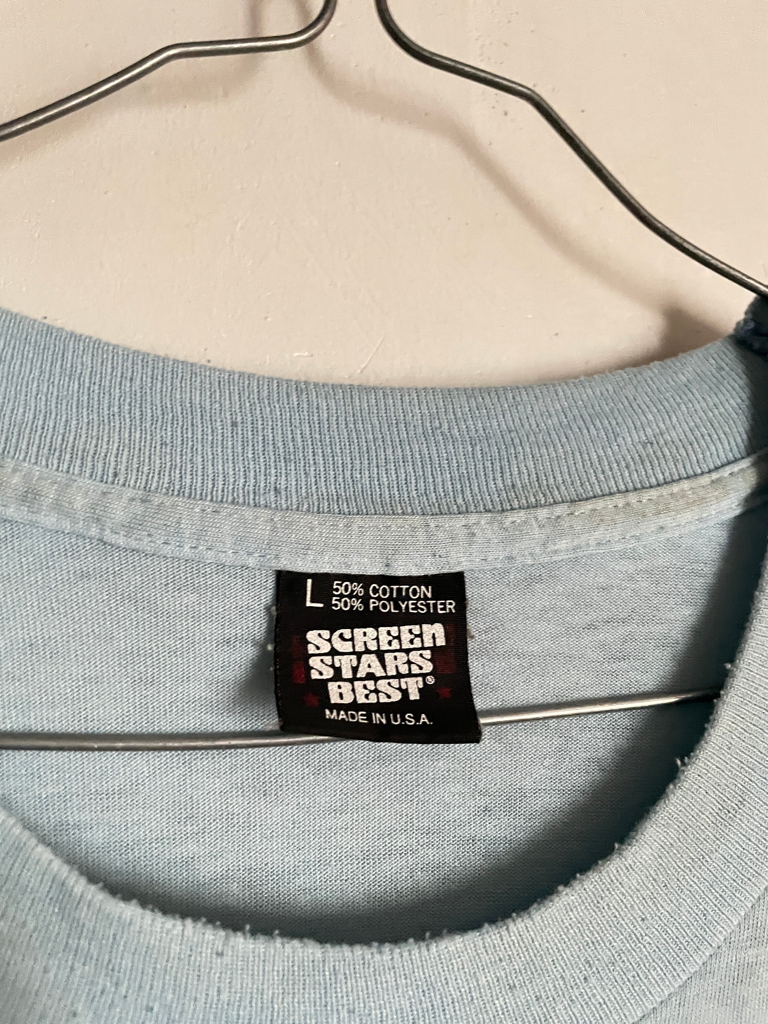 Old Made In U.S.A. Light Blue Dog Printed T Shirt