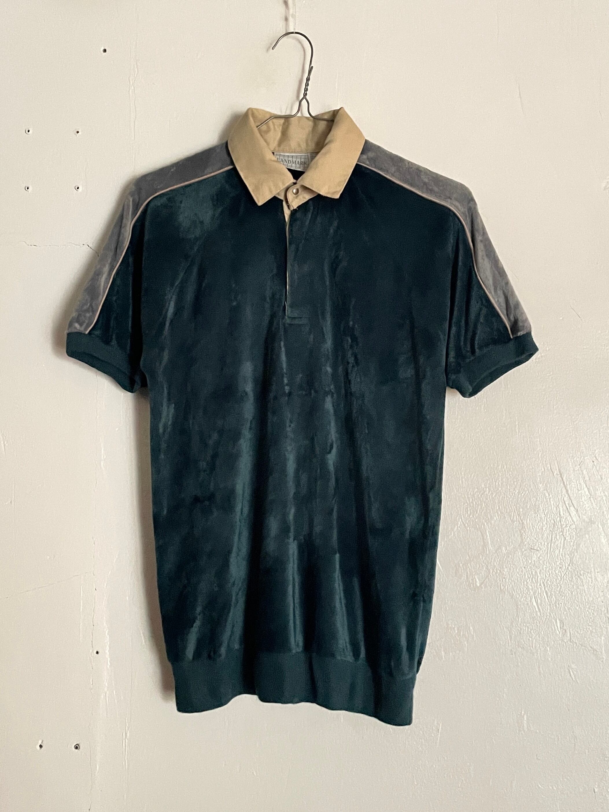 Old LANDMARK Green Swiching Design Velor Polo Shirt