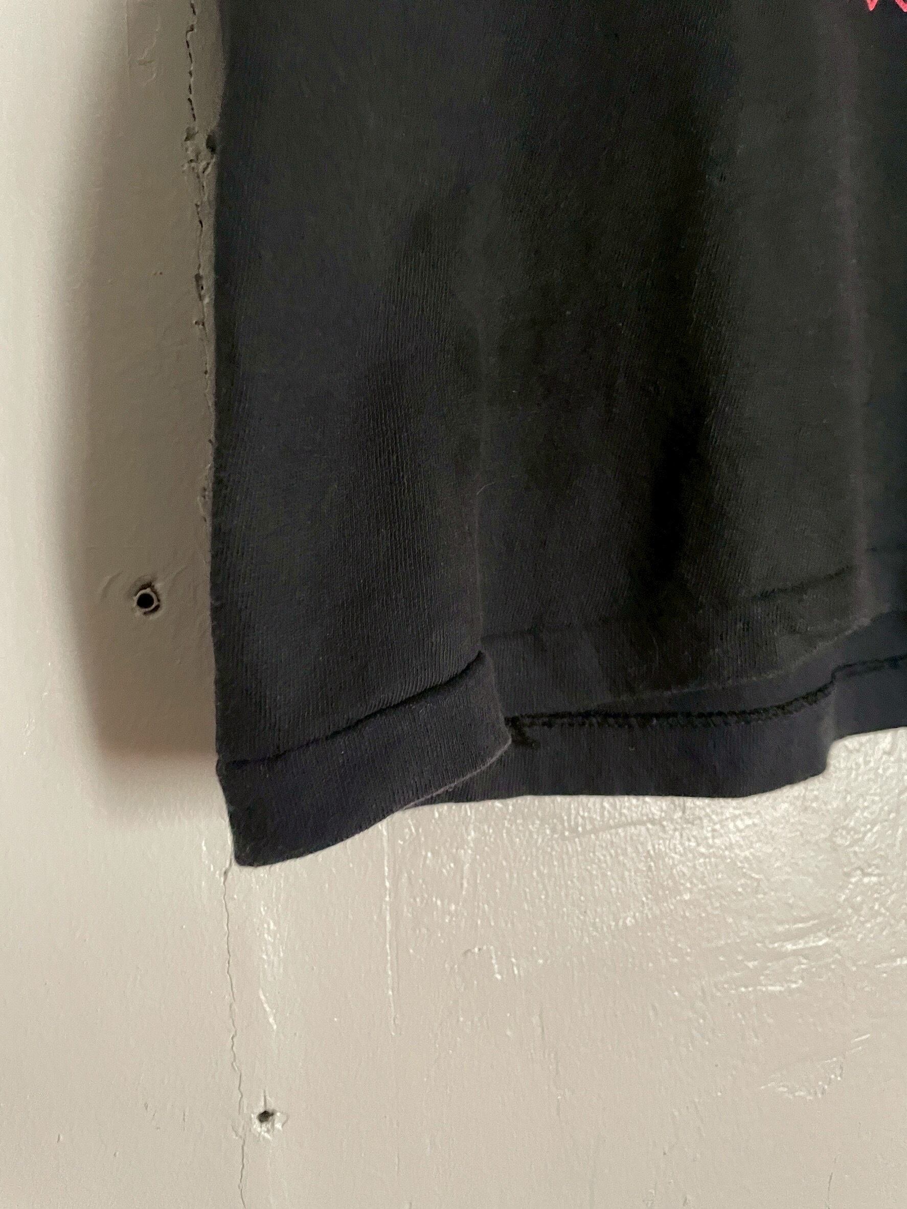 アメリカのロックバンド”ハート”の両面プリントTシャツ。ボーカルのアン・ウィルソン、ギターのナンシー・ウィルソン姉妹を中心としたバンドです。雰囲気抜群のメンバープリントで、遊び心の感じられるデザインになってます。バックにはツアーで周ったであろう、国名がズラッとプリントされています。ボディはヘインズでUSA製。しっかりとシングルステッチ。XLとサイズ感もゆったりめで状態も◎です。夏には一枚で着たいスペシャルなTシャツです。