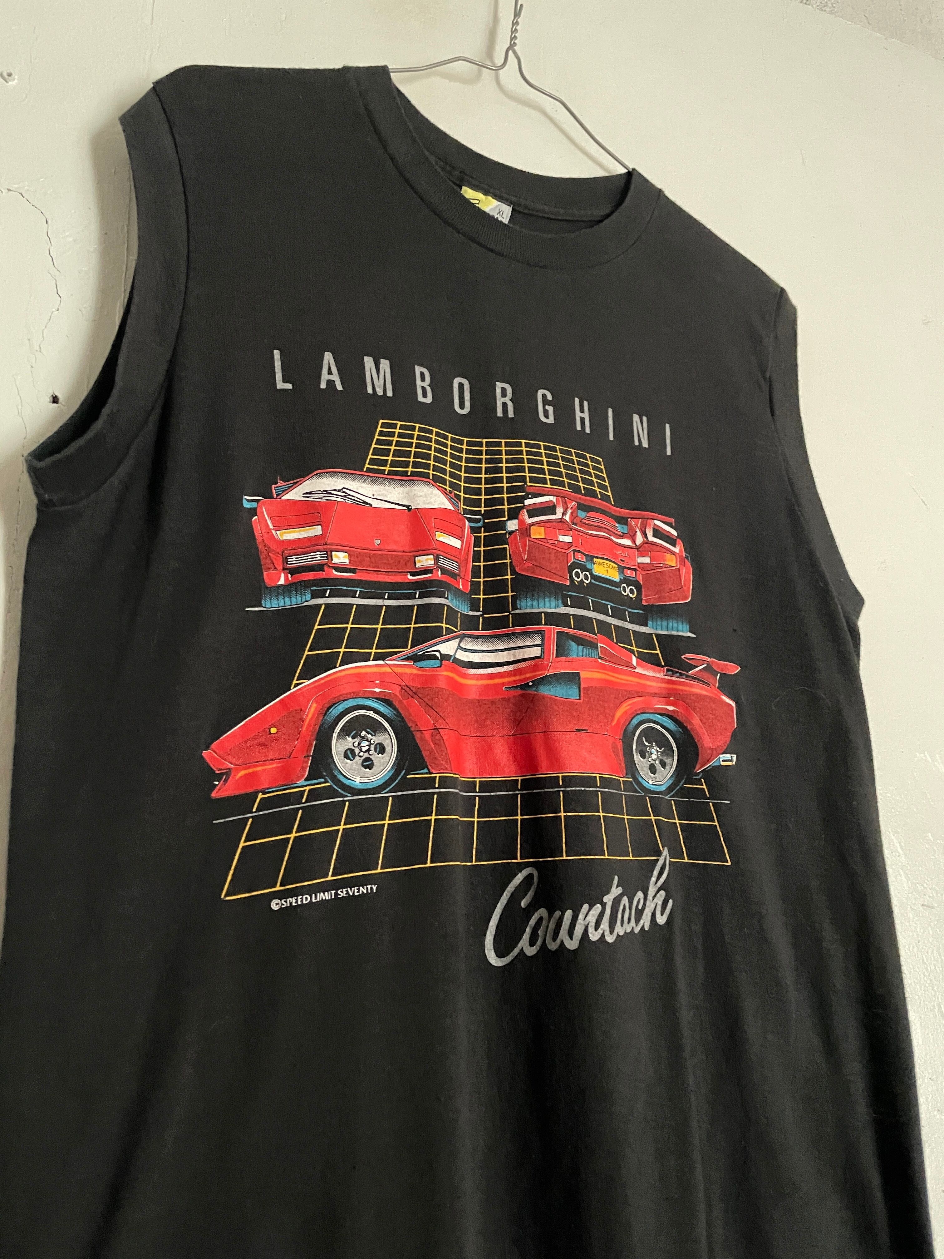 Old Lamborghini Countach Black Printed No Sleeve T Shirt