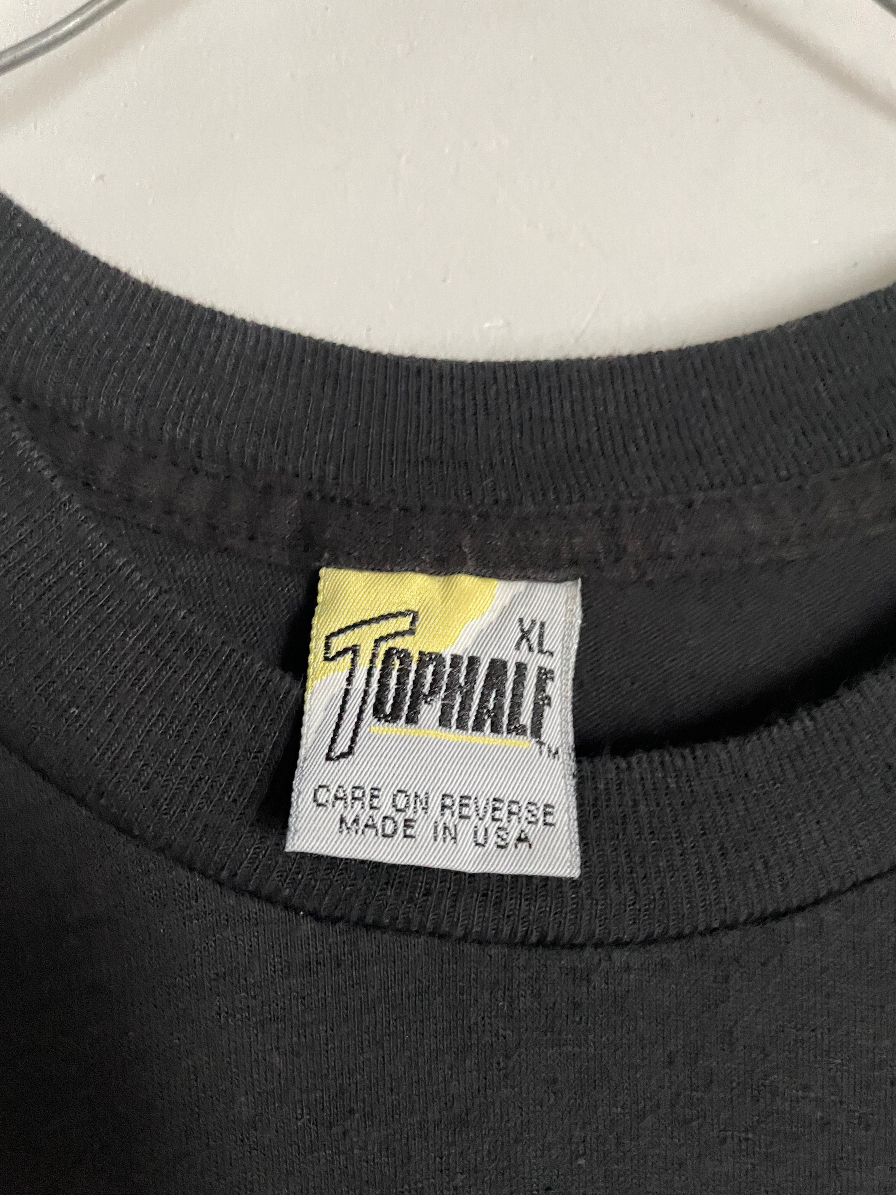 ブラックボディに、かっこいいランボルギーニ・カウンタックがプリントされた、ノースリーブTシャツ。それぞれ違った角度から見たカウンタックのプリントデザイン。かっこよさだけではなく、コミカルな雰囲気もあるお洒落な1着です。USA製でシングルステッチとしっかり古いボディが使われているのも魅力的です。目立ったダメージなどは無く、コンディションは◎です。