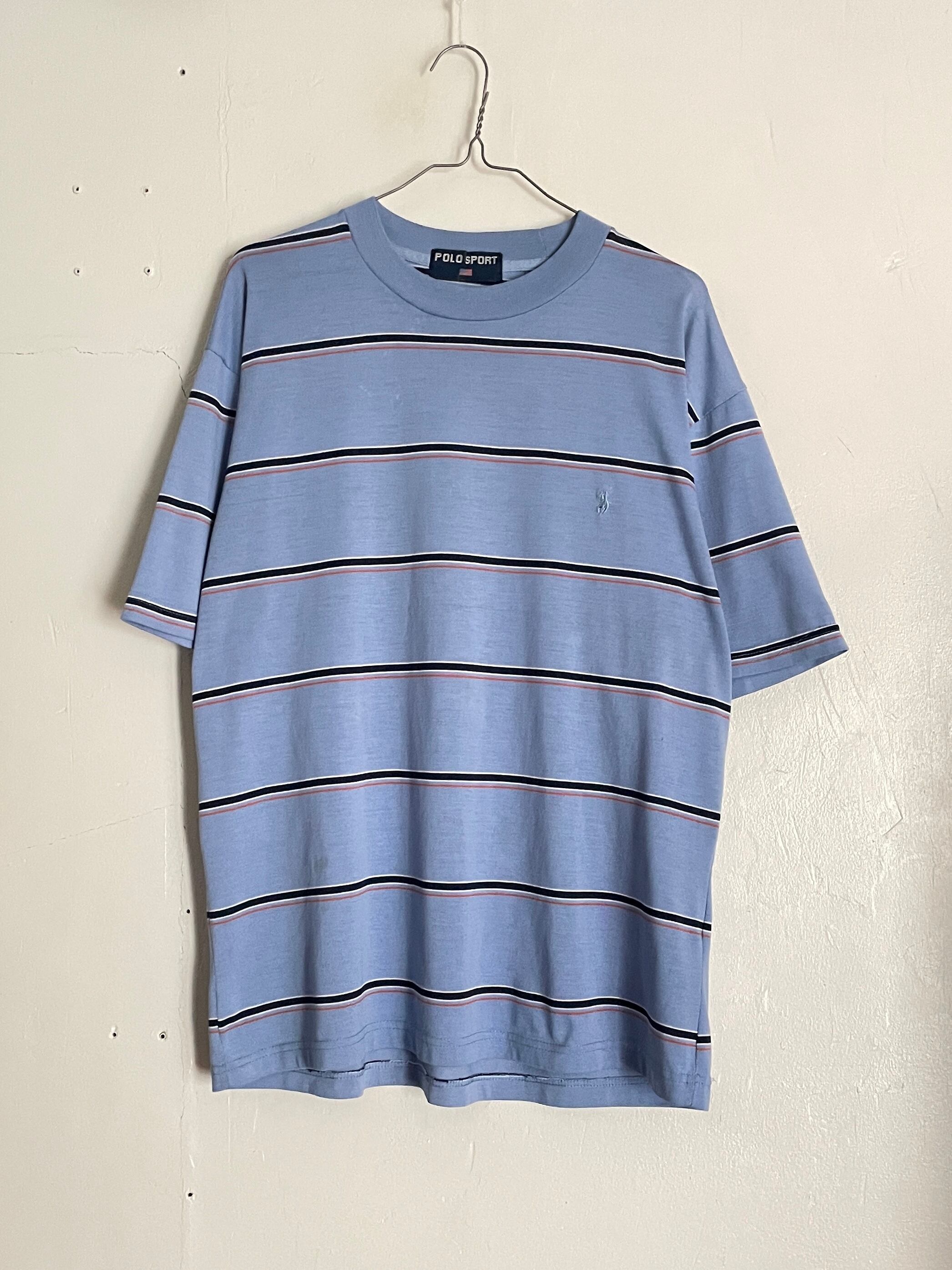 爽やかなライトブルーボディに、お洒落なラインデザインが施された、ポロスポーツのTシャツ。ストレッチの効いた、やや透け感のある素材感。同じライトブルーのポニーロゴもさりげなくてグッドです。ゆったりとしたサイズ感で、一枚ではもちろん、インナーの差し色としても、様々な場面で活躍してくれるアイテムです。