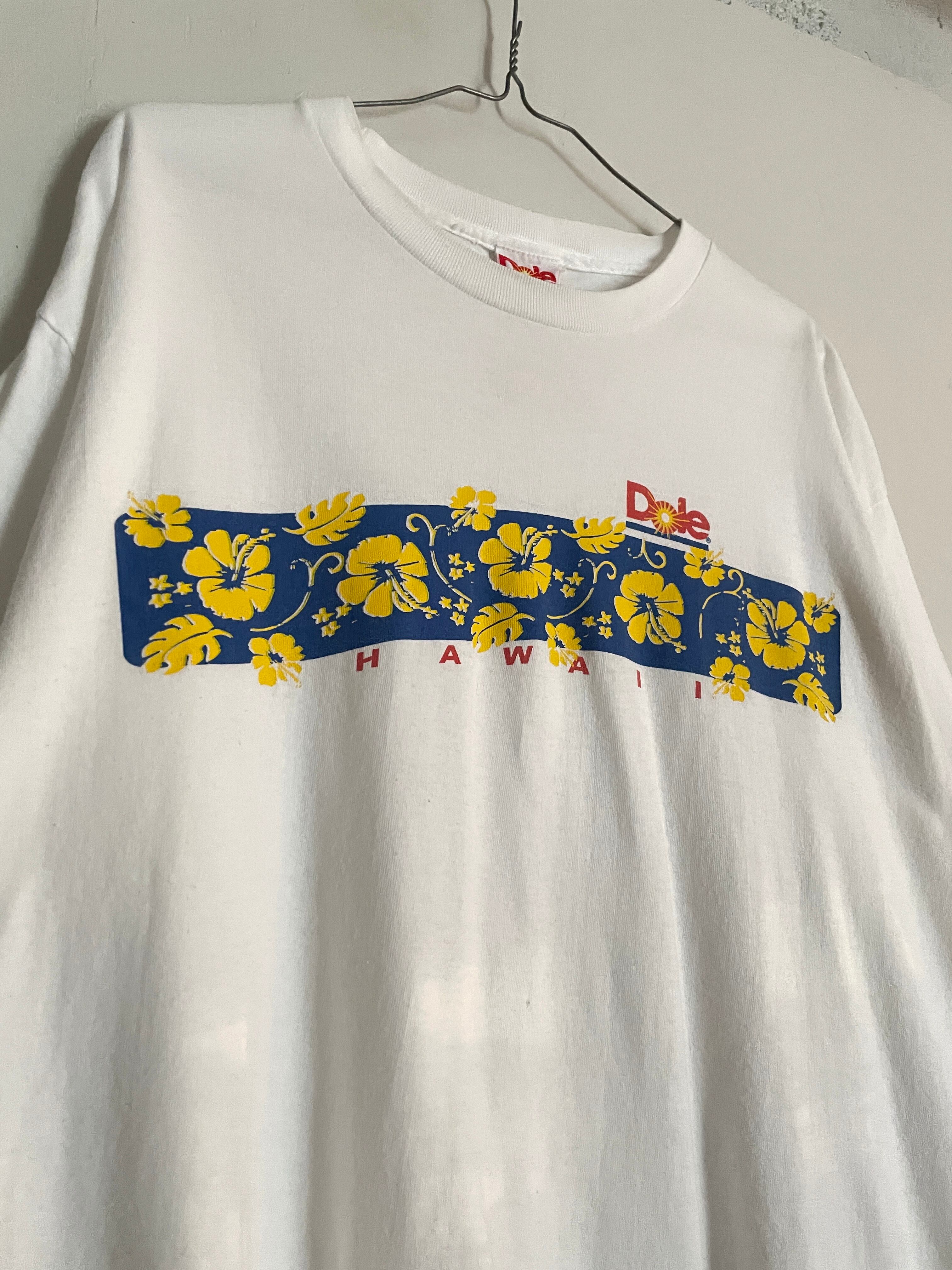 Old Made in U.S.A. Dole White Flower Printed T Shirt