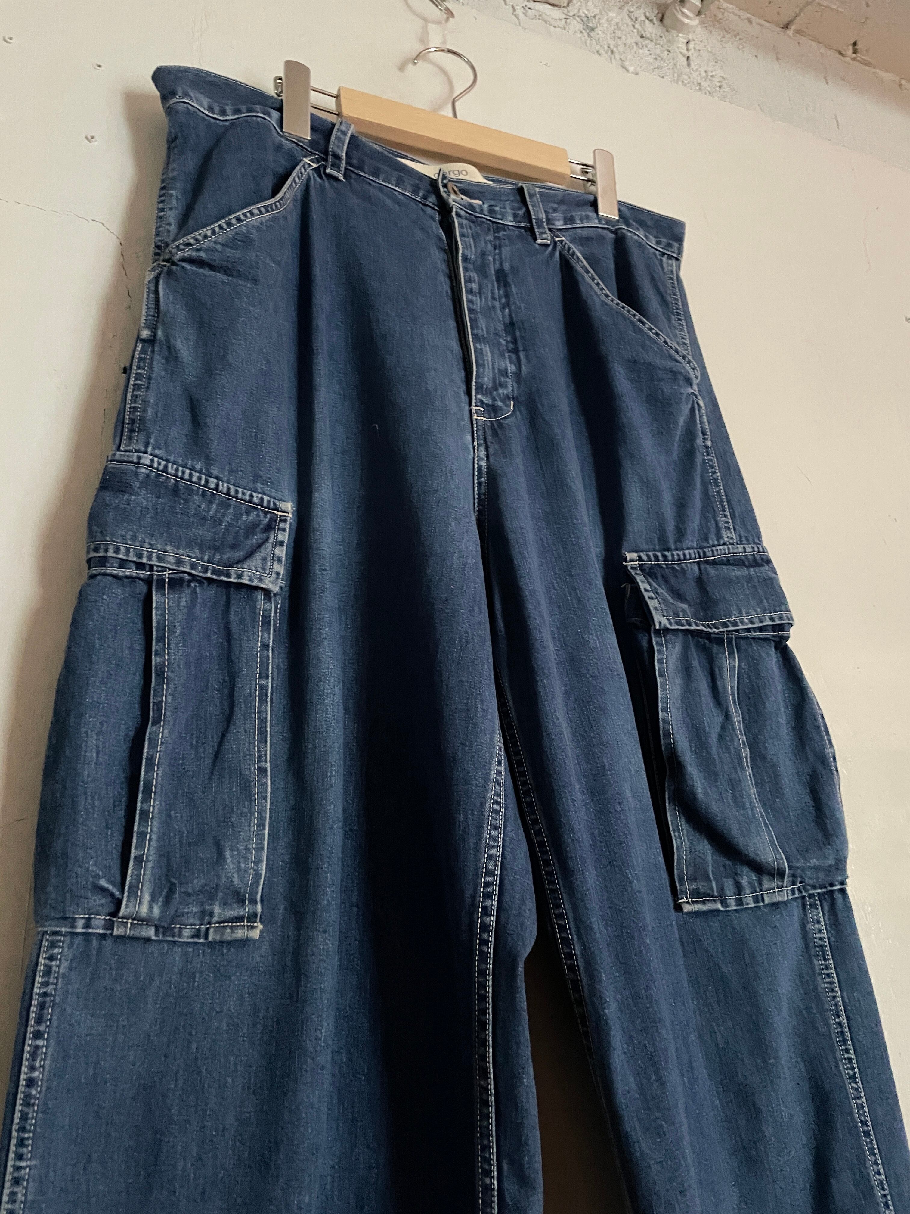 ワイドでルーズな、ギャップのクロップド丈カーゴデニムパンツ。股上がかなり深めで、ストリートにはもちろん、モードな雰囲気にも落とし込めそうな一本です。クロップド丈のパンツは、ショーツが苦手な方には、是非おすすめしたいアイテムです。ポケットも豊富で、機能性にも優れた、今の時期には確実に活躍してくれること間違い無しのアイテムです。