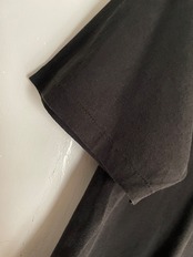 やや褪せたブラックボディに、92年に公開されたアメリカ映画、”スニーカーズ”のプリントが両面に施されたTシャツ。リヴァー・フェニックスが出演していた事でも有名な映画です。フロントにはレッドカラーでムービーネームプリントと92年のコピーライト。バックには何かの暗号のような、コンピューターを連想させられるプリントが施されています。ボディはヘインズで、もちろんUSA製。大き過ぎず、小さ過ぎないサイズ感で、夏には一枚で着たい、希少なムービーTシャツです。