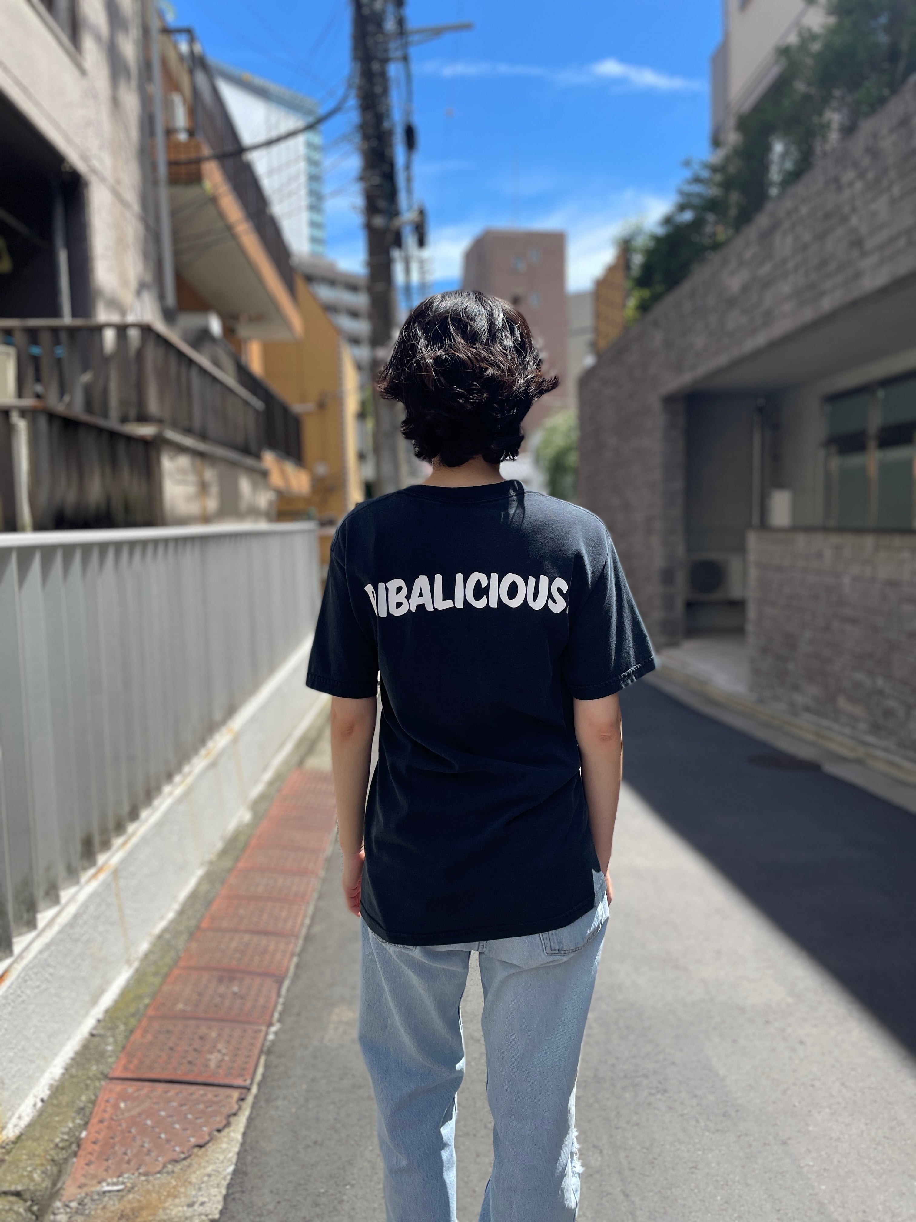 ブラックボディに、アメリカの、BBQレストランチェーン”フェイマス・デイブズ・オブ・アメリカ”のプリントが施されたTシャツ。フロント部分にはネームプリントと肉を焼いている豚のキャラクタープリント。バックには、”ばかばかしい!”といった、意味の英文プリント。主張が激し過ぎないデザインなので、様々なファッションに取り入れやすいTシャツかと思います。ややタイトめなシルエットで、女性の方はもちろん、男性の方もピタッとしたサイズ感で着ると、今っぽくてお洒落かと思います。