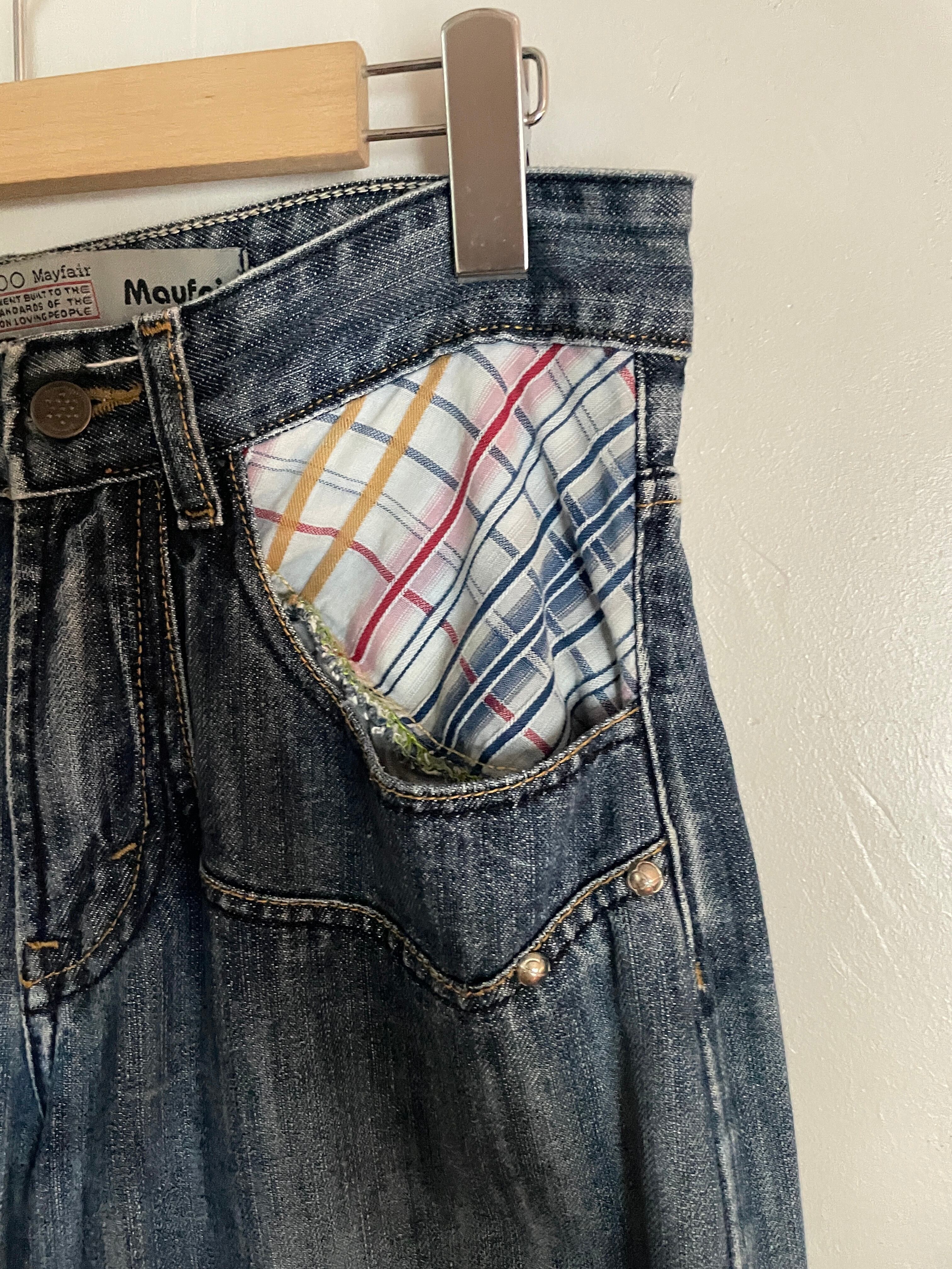 褪せたインディゴカラーで、十字架のパッチデザインや、所々のスタッズデザインからY2Kな雰囲気が感じられるデニムパンツ。ポケットのカラフルなデザインもお洒落です。スタッズによって打ち込まれた別布のパッチなどからは、こだわりとセンスが感じられる一本。太さのあるワイドストレートシルエット。シンプルになりがちな今の時期にはもってこいのデニムです。