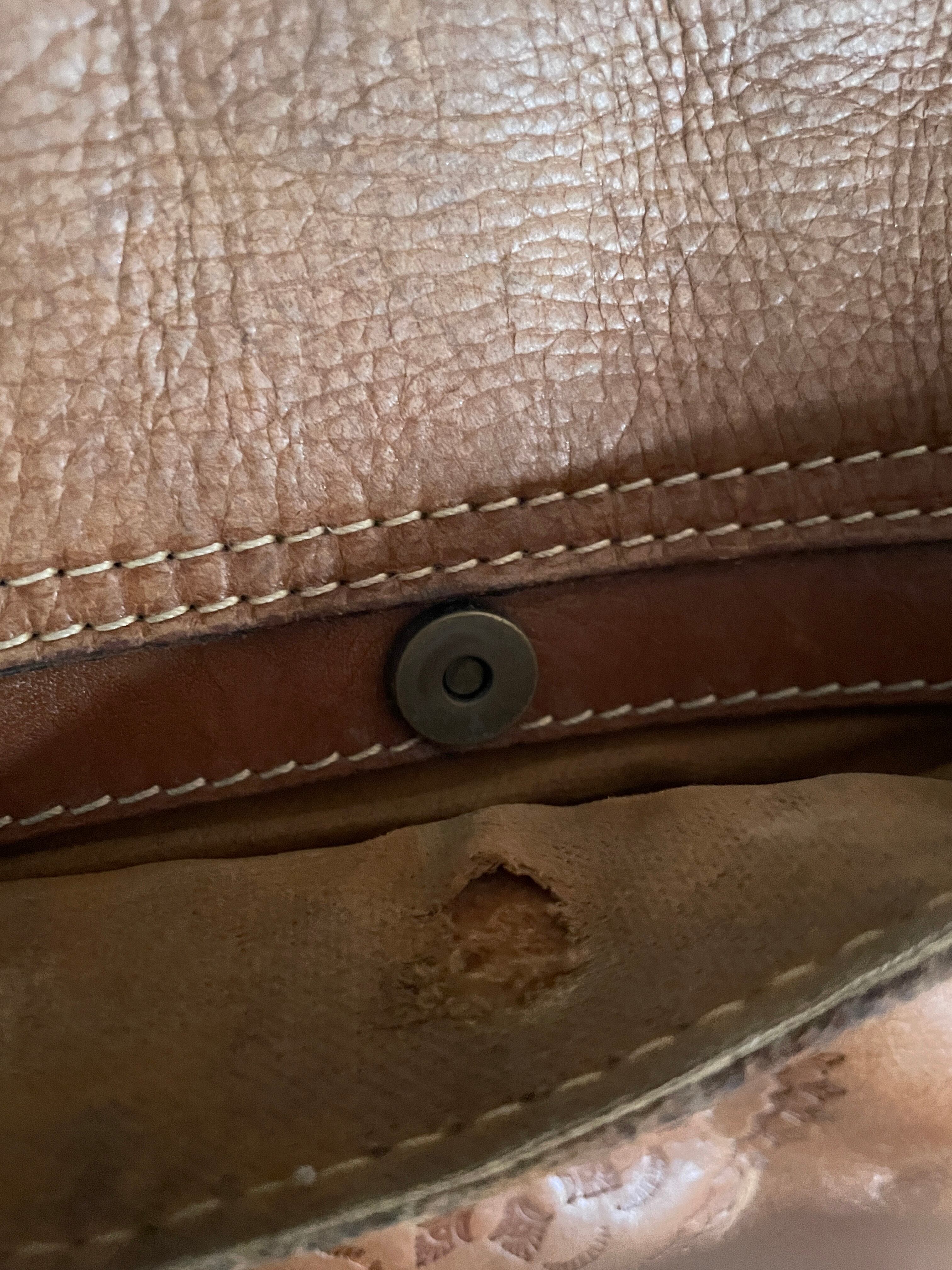 Old Patricia Nash Brown Embroidery Design Leather Shoulder Bag