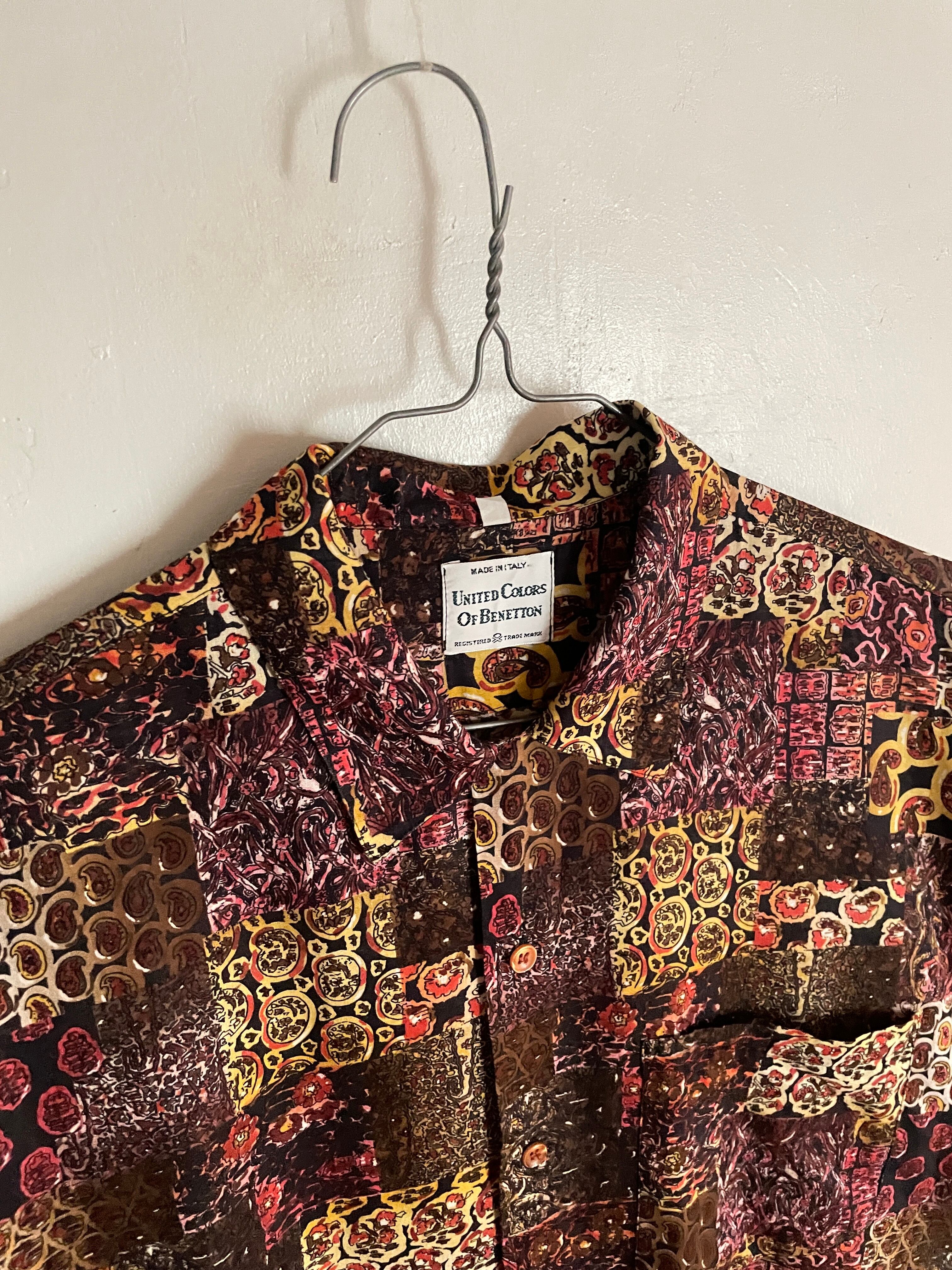 Old UNITED COLORS OF BENETTON Whole Pattern Design Cotton S/S Shirt