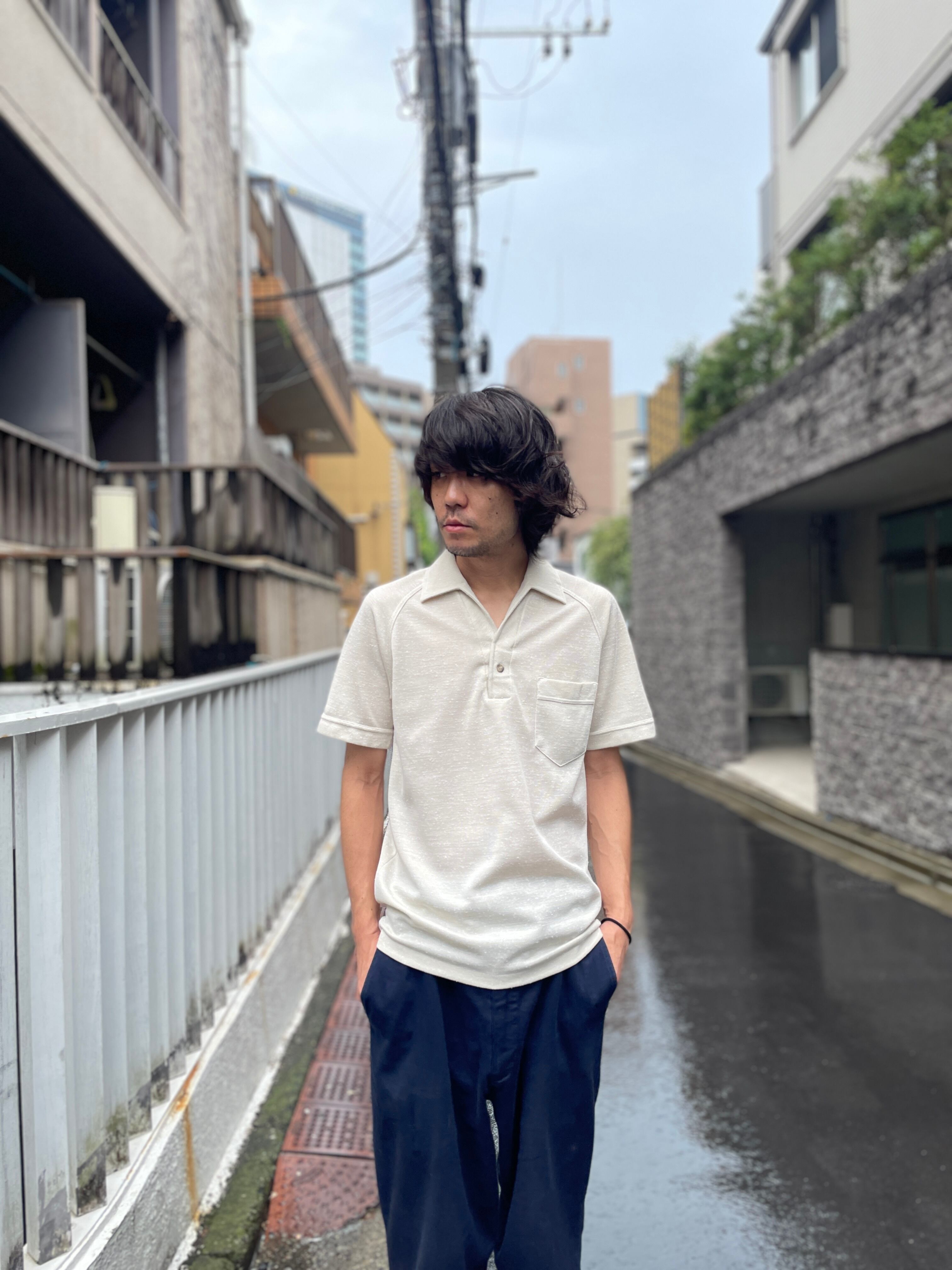 アイボリーボディで、やや透け感のある素材から、夏っぽさを感じられる、ポリエステルポロシャツ。ネックが広めで、ボタンが一つなのもポイント。癖がない分、様々なアイテムとの相性の良さそうな一着です。大き過ぎず、小さ過ぎないサイズ感なので、男女共におすすめできるアイテムです。