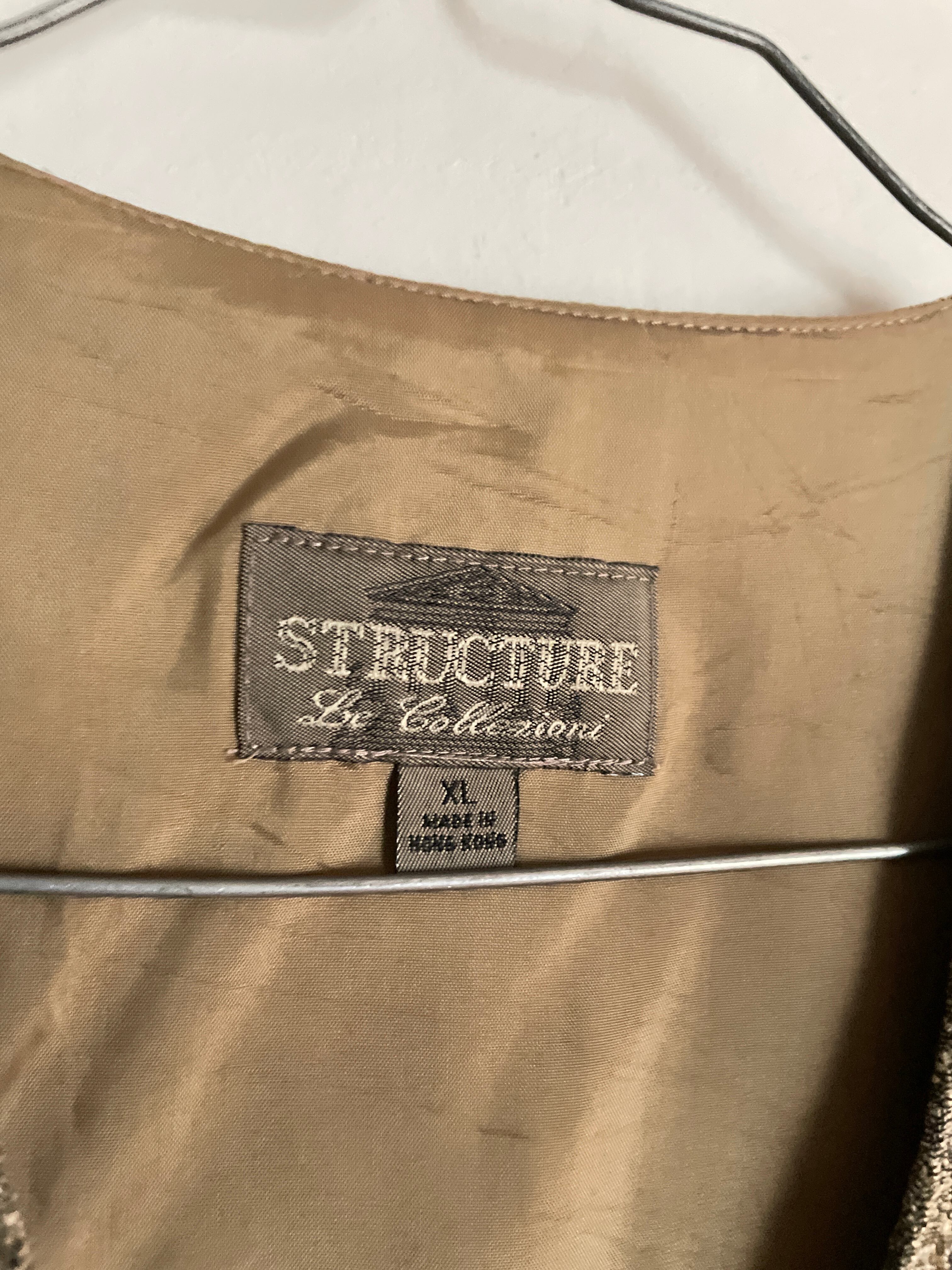 落ち着いた色味のストライプ柄で、背中は無地タイプのベスト。あえて荒めに編まれたような素材感が優しい印象、立体感もあります。シルクとレーヨンの混紡素材が柔らかく、アームホールも深めにとられているので、レイヤードには最適だと思います。前ポケットも綺麗に柄合わせされている、クオリティの高い一着です。