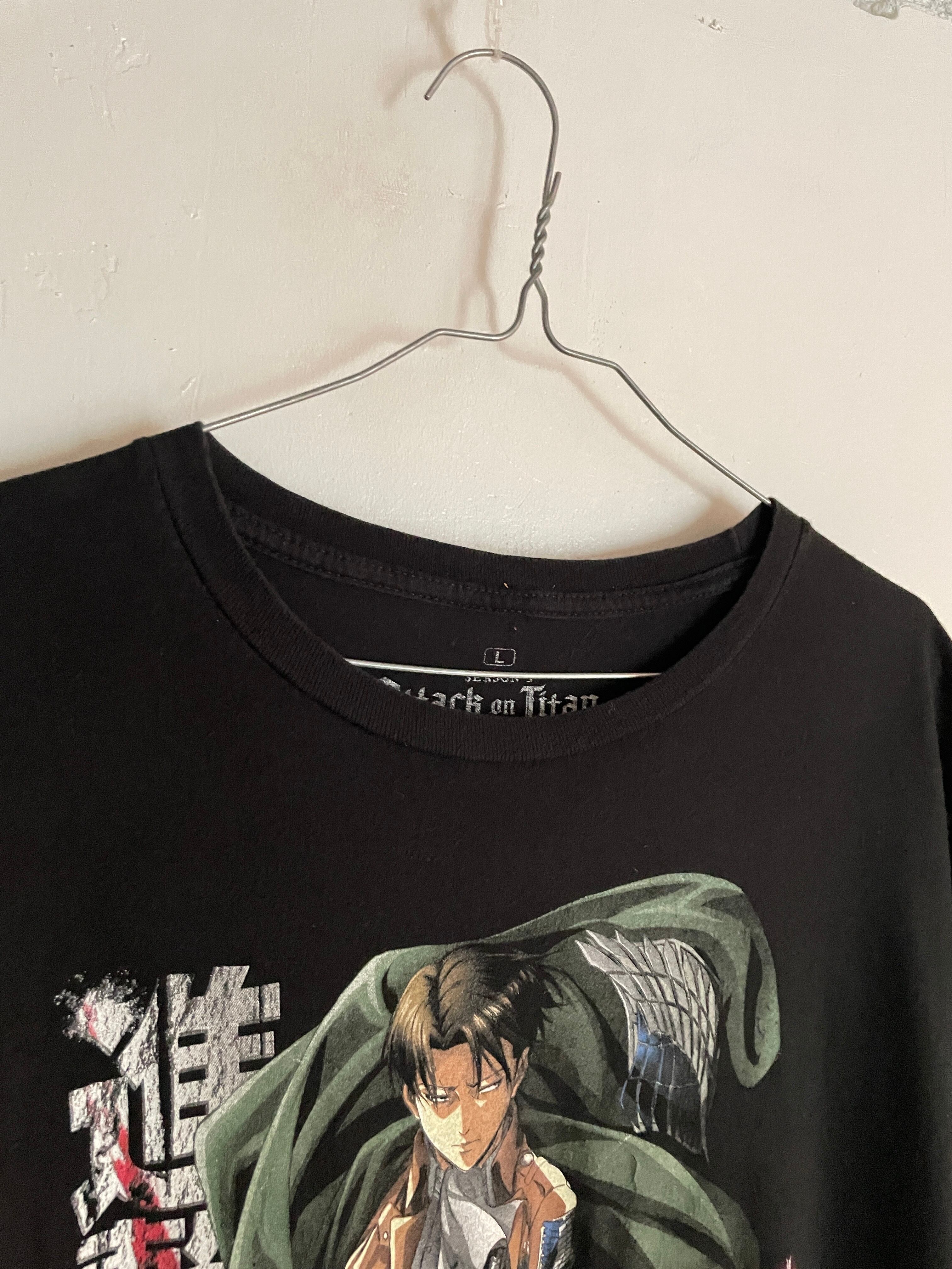 海外でも人気があり、今や日本のアニメを代表する作品となった「進撃の巨人」のプリントTシャツ。登場人物である、リヴァイ兵長がプリントされています。大き過ぎず小さ過ぎない程良いサイズ感で、アニメ好きの方にはもちろん、コーディネートに抜け感を与えるアイテムとしても活躍してくれそうです。