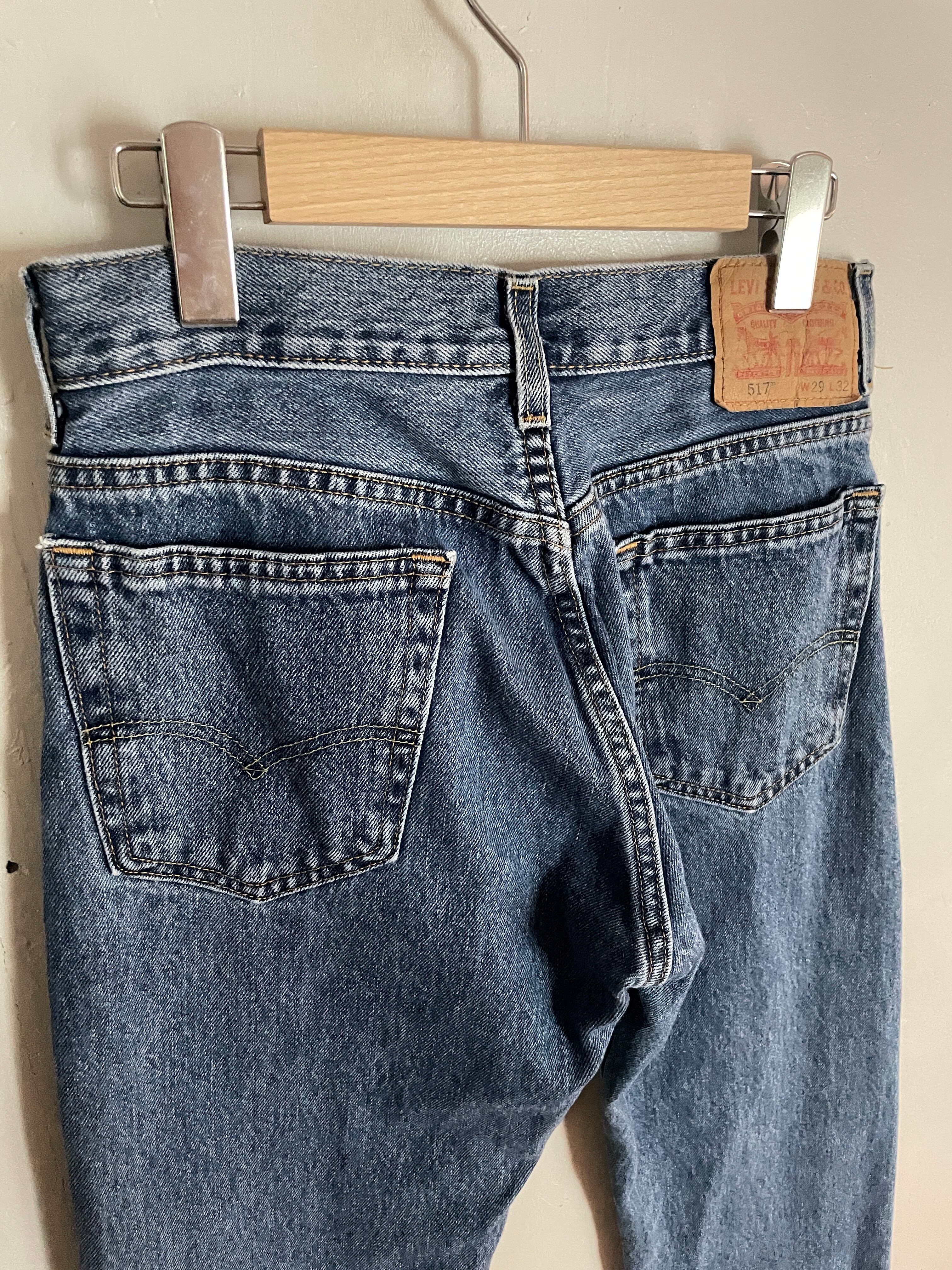 やや褪せた色味で、裾にかけて絶妙に綺麗なフレアシルエットが魅力的な、リーバイス517デニムパンツ。細身で体のラインを綺麗に出してくれる一本です。タイトめなトップスなどにはもちろん、あえてゆったりめなトップスを合わせたりしても良さそう。男女共におすすめしたいパンツです。