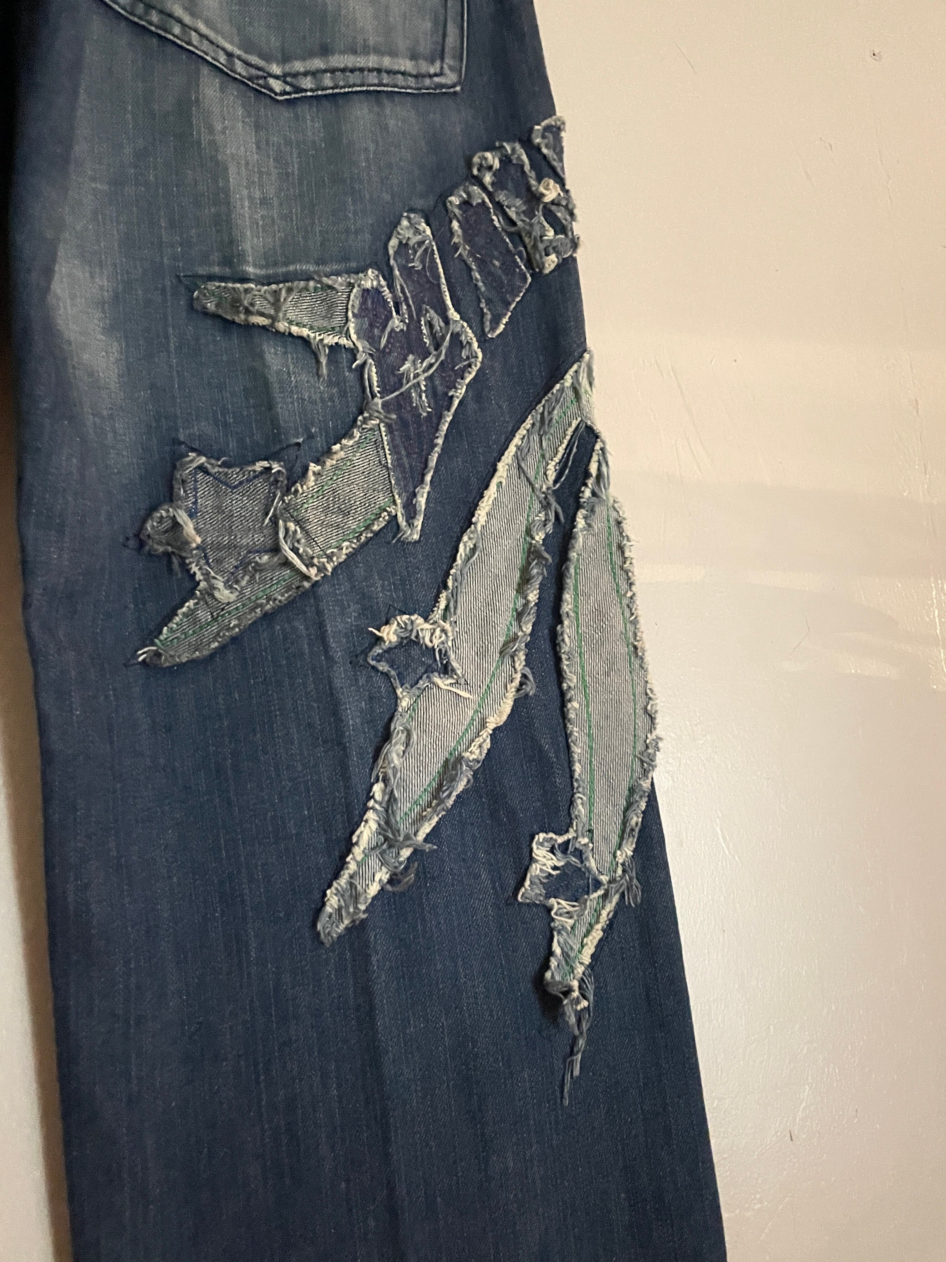 Old Patchwork Design Low Rise Denim Pants