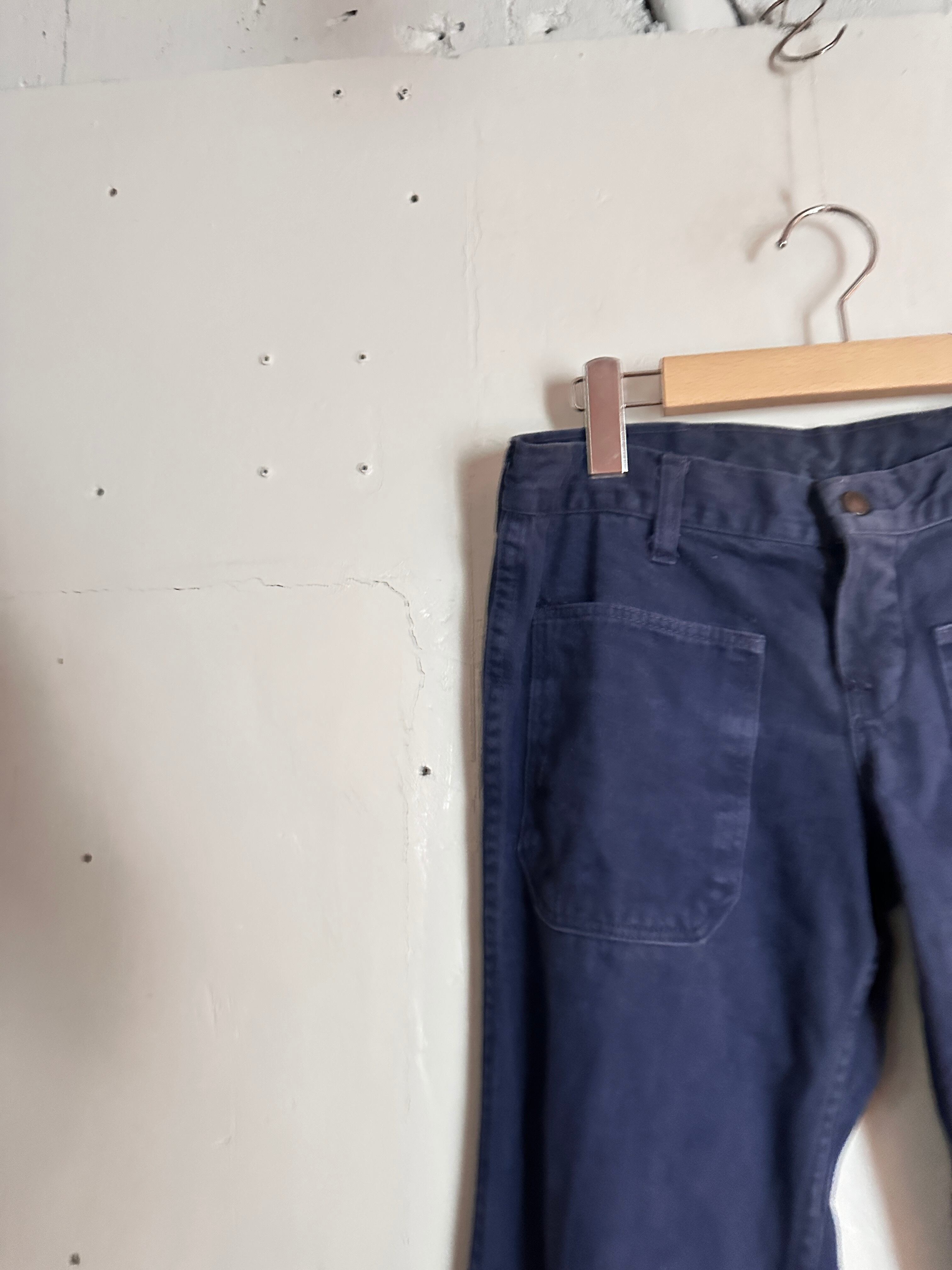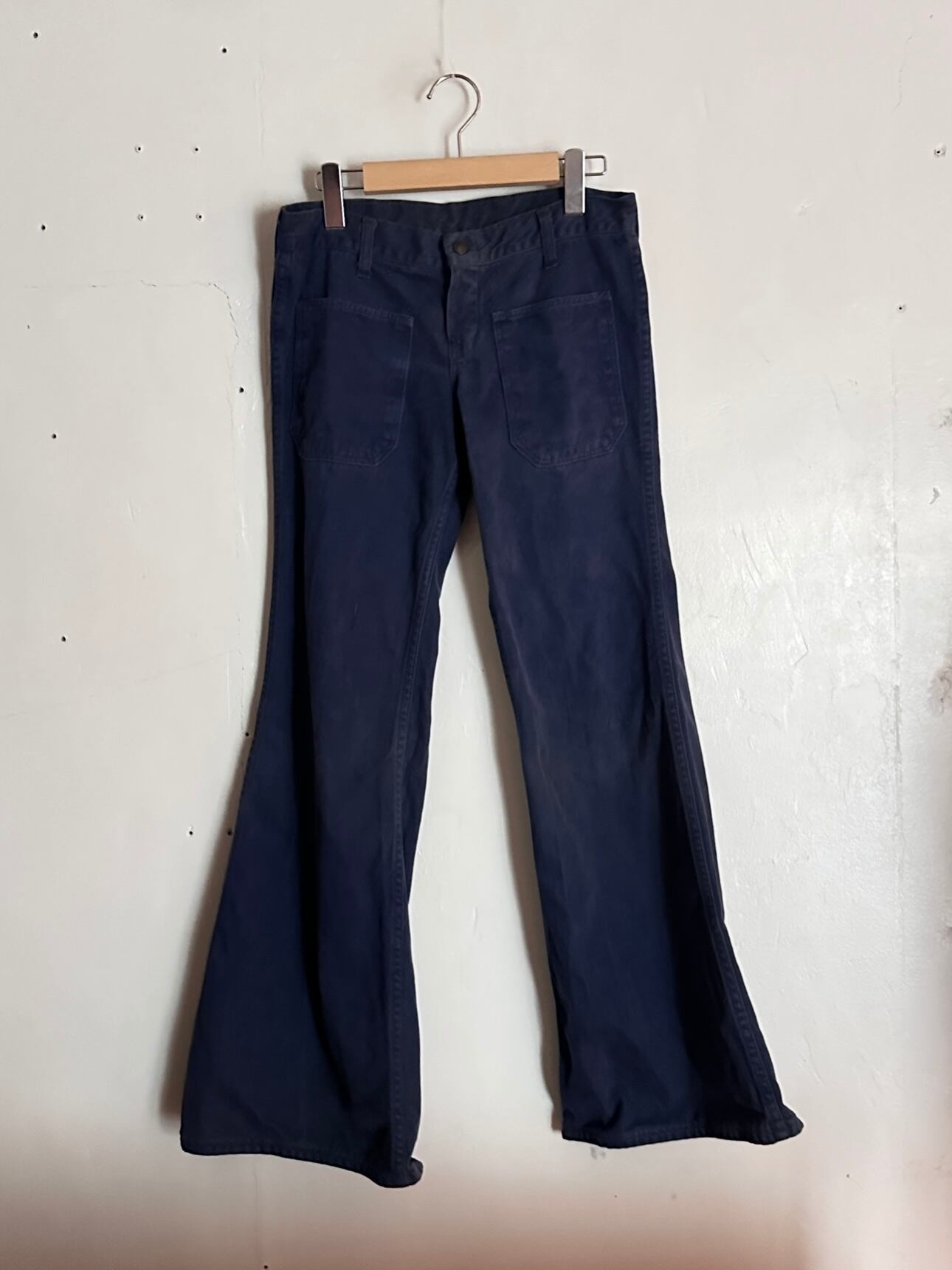 高級感のあるネイビーのフレアパンツ。膝下から綺麗に広がる裾は、70年代の雰囲気を感じられます。フレアパンツはブーツやローファーなどと相性抜群で、綺麗めなスタイルが多くなる秋に欠かせないアイテムです。フレアパンツをお探しの方にぜひともおすすめしたい1本です。