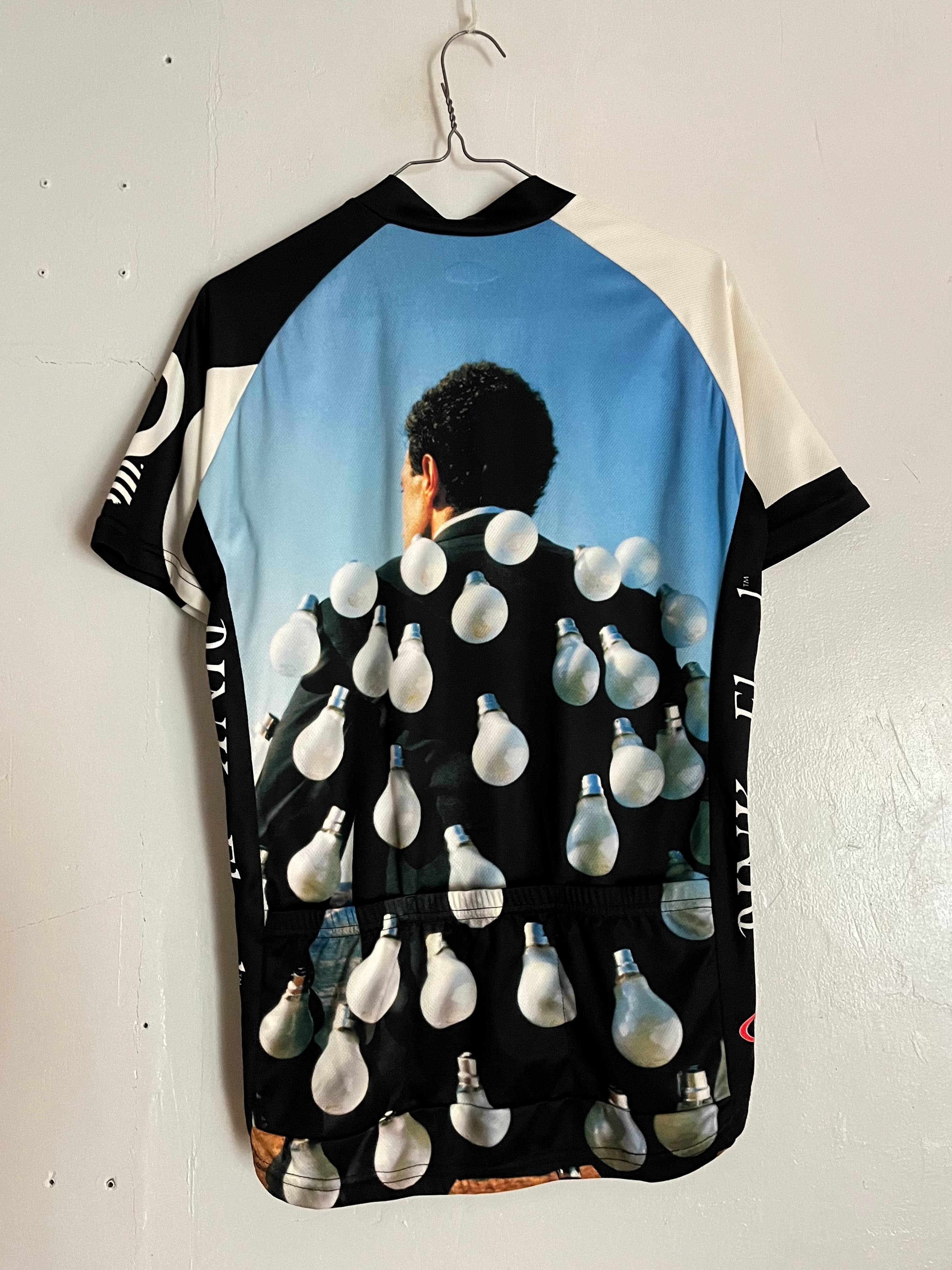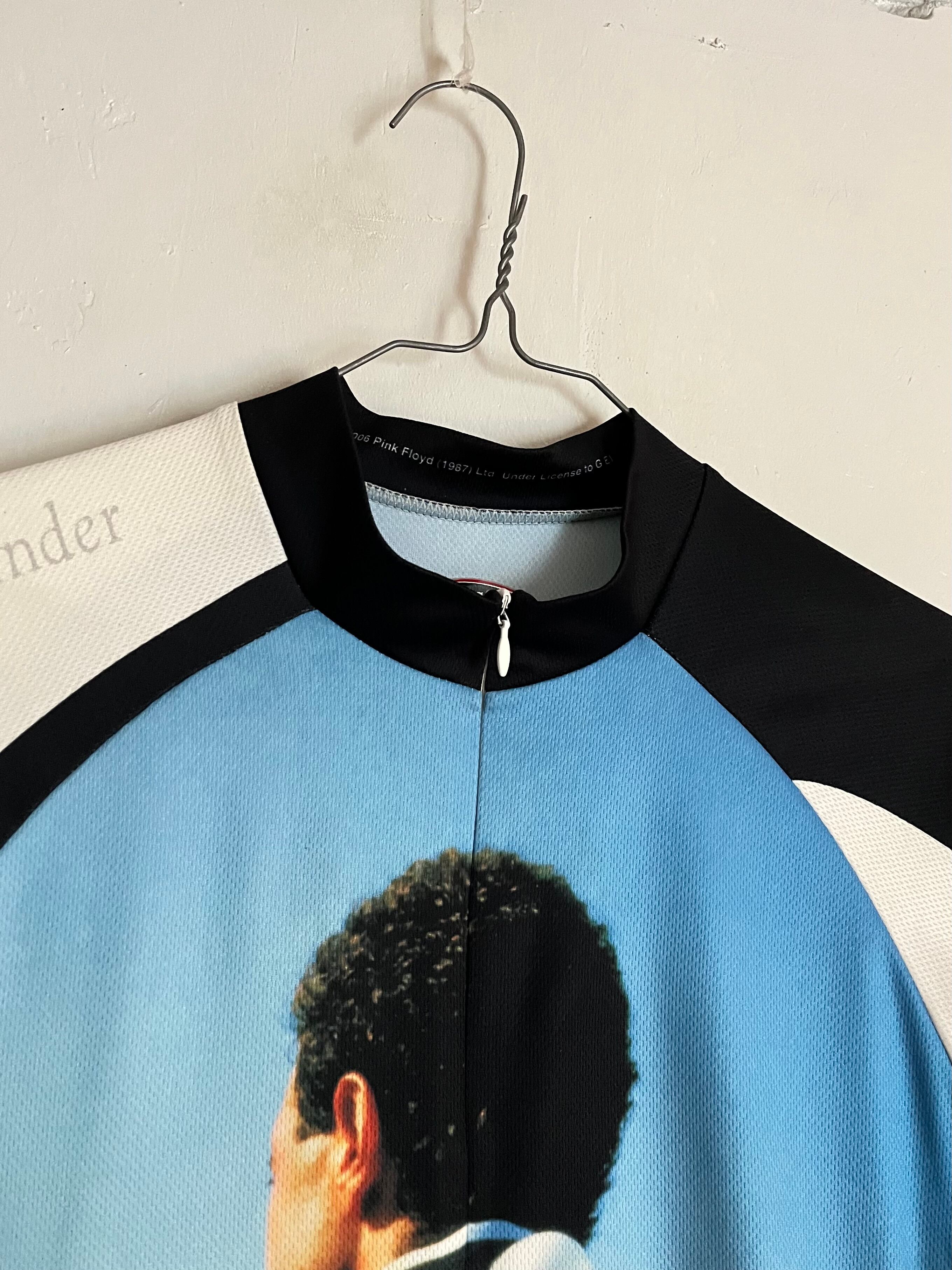 両面に、イングランド出身のロックバンド、”ピンクフロイド”のサイクリングジャージ。かなり珍しいアイテムかと思います。写真のデザインが魅力的です。サイクリングジャージなので、通気性が良く、デザインとしても涼しげのある爽やかな水色となっているので、今の季節にピッタリです。後ろにポケットが3つ付いているので、他のTシャツとは差別化ができることも特徴の一つです。