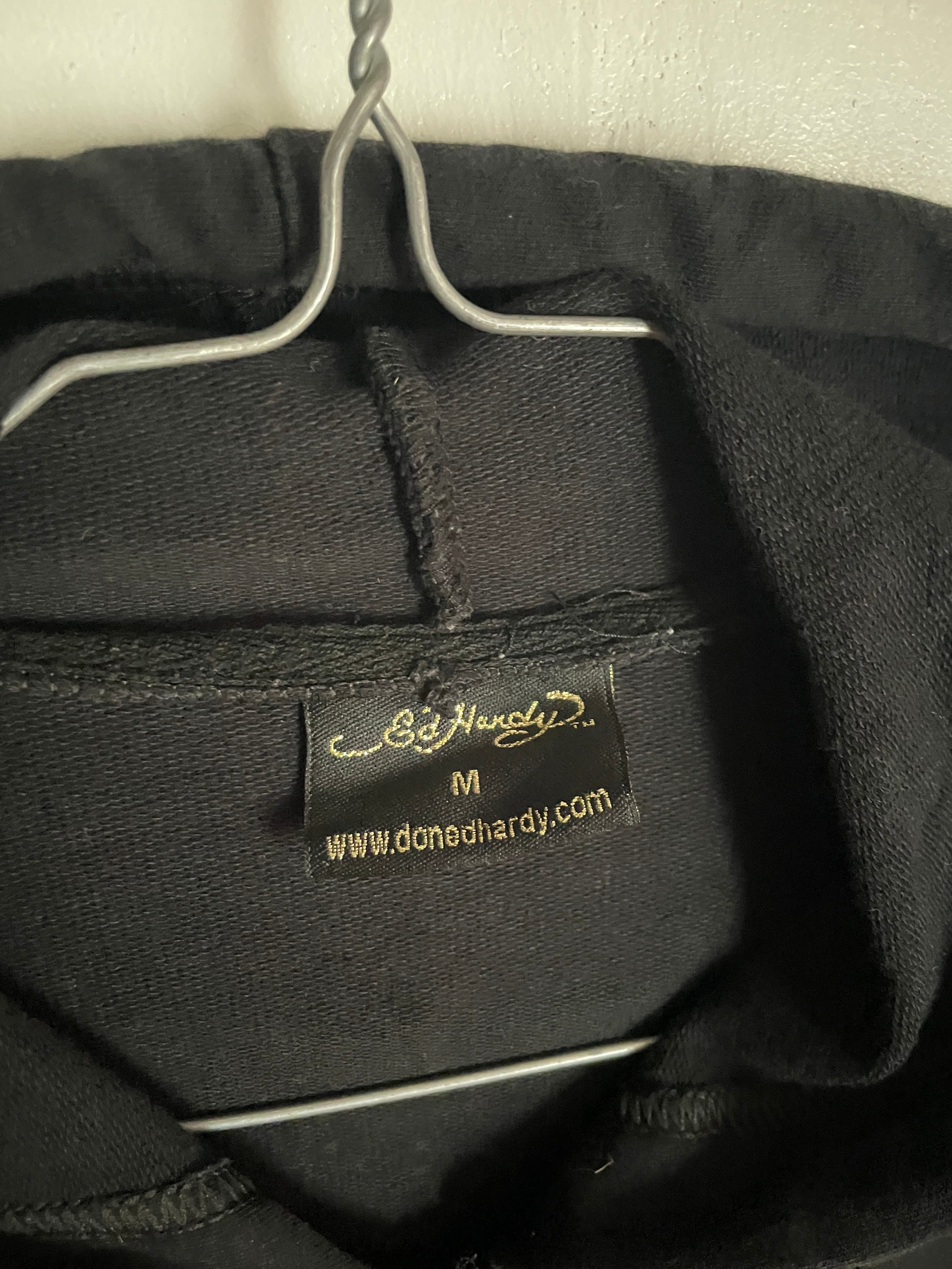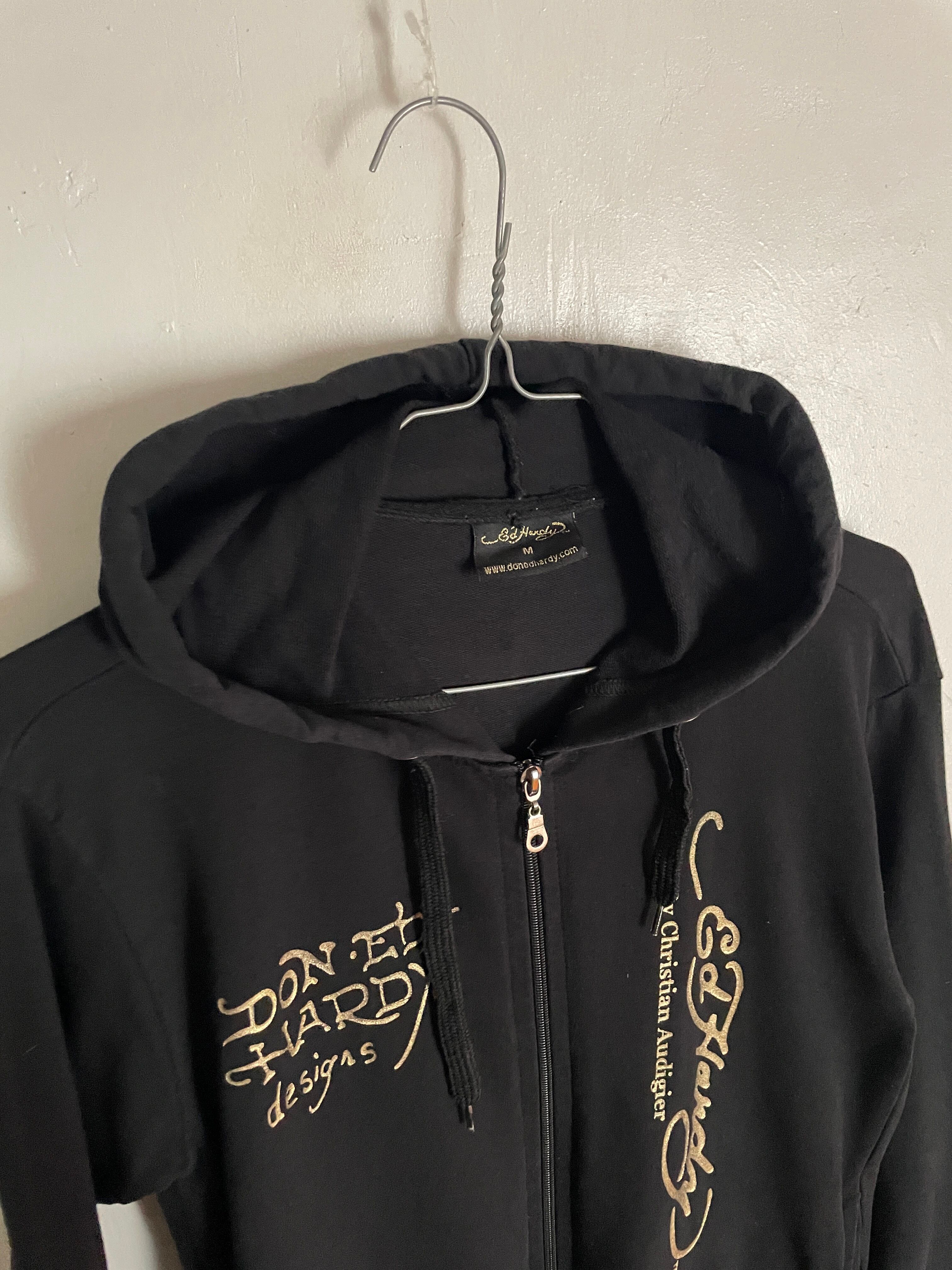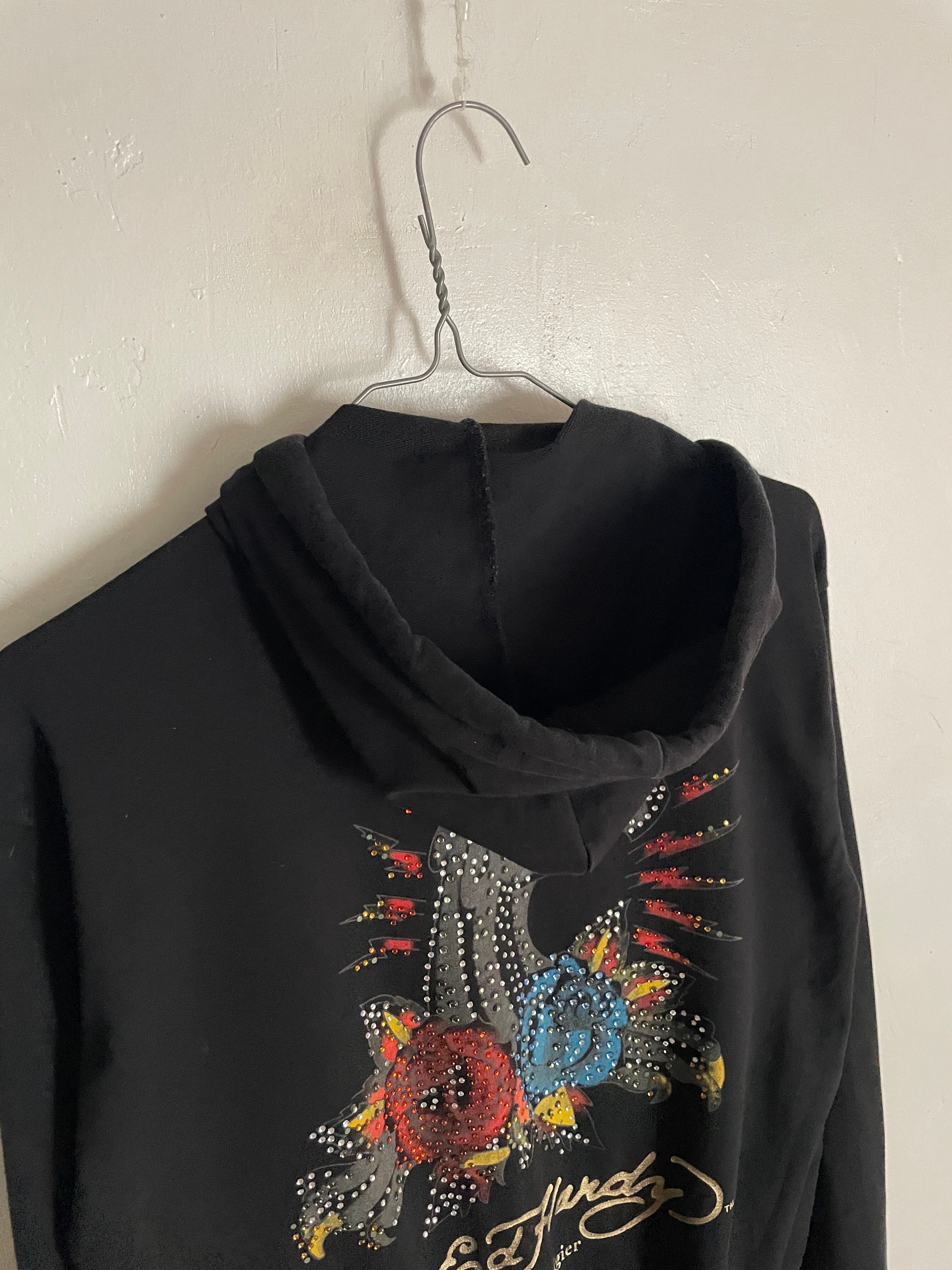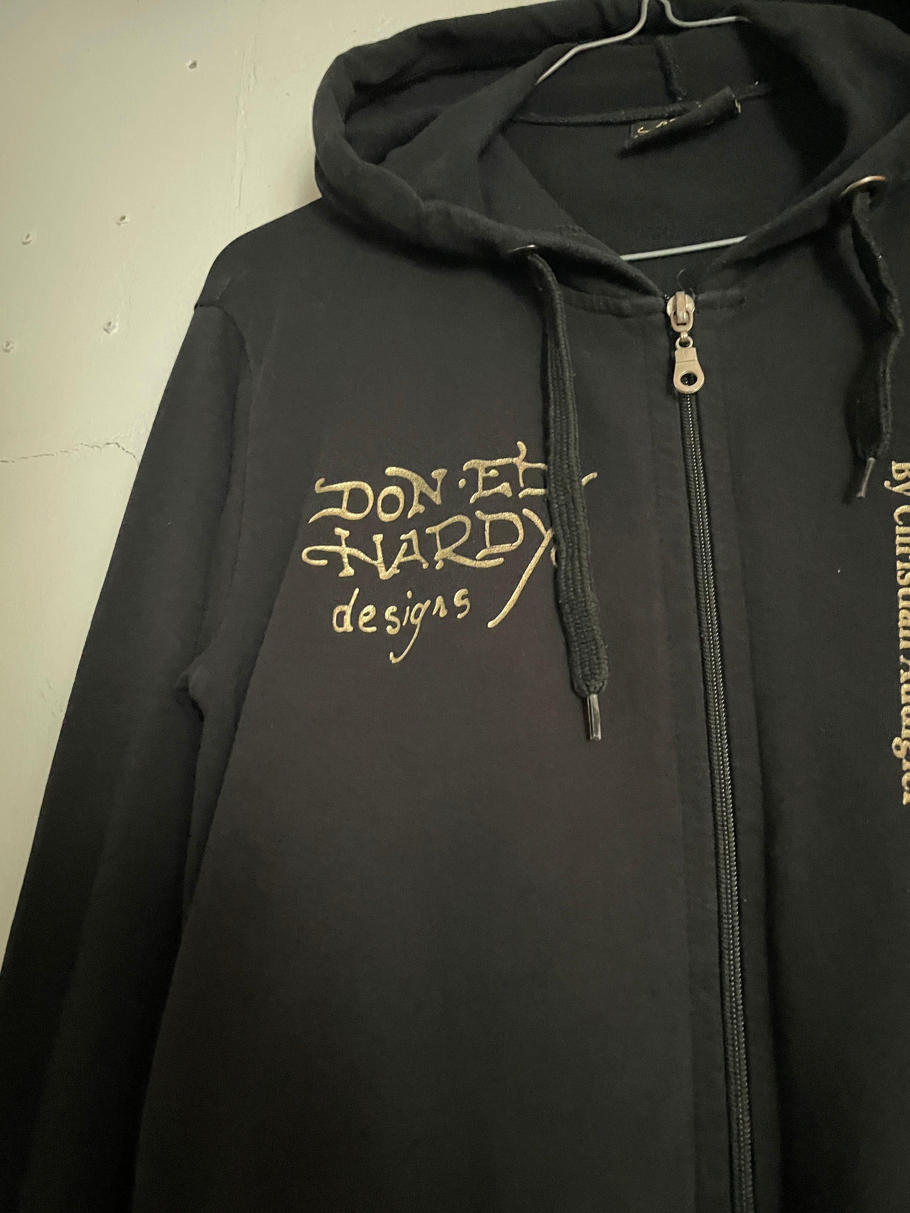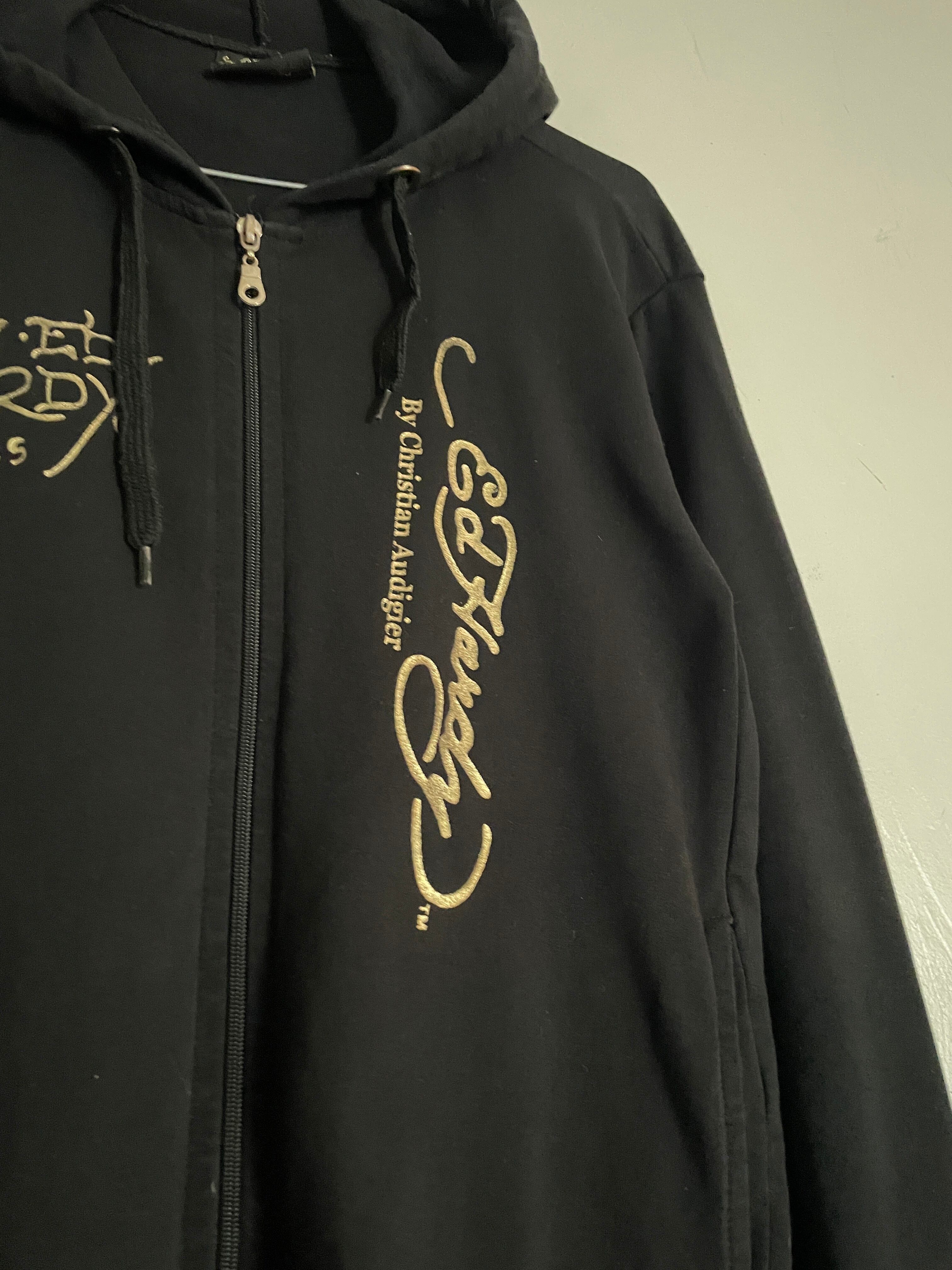 Old Ed Hardy Black Double Printed Design Zip Hoodie