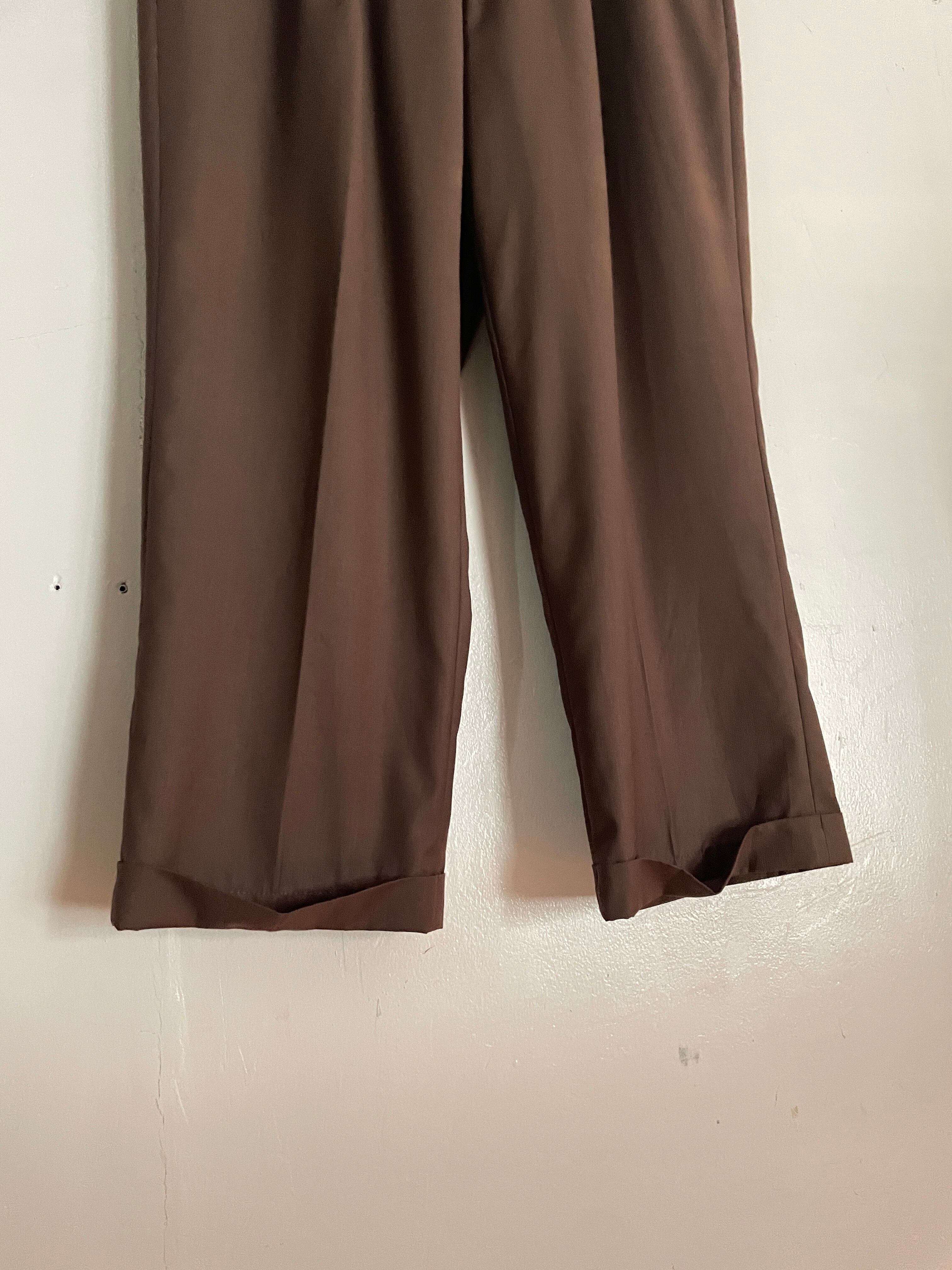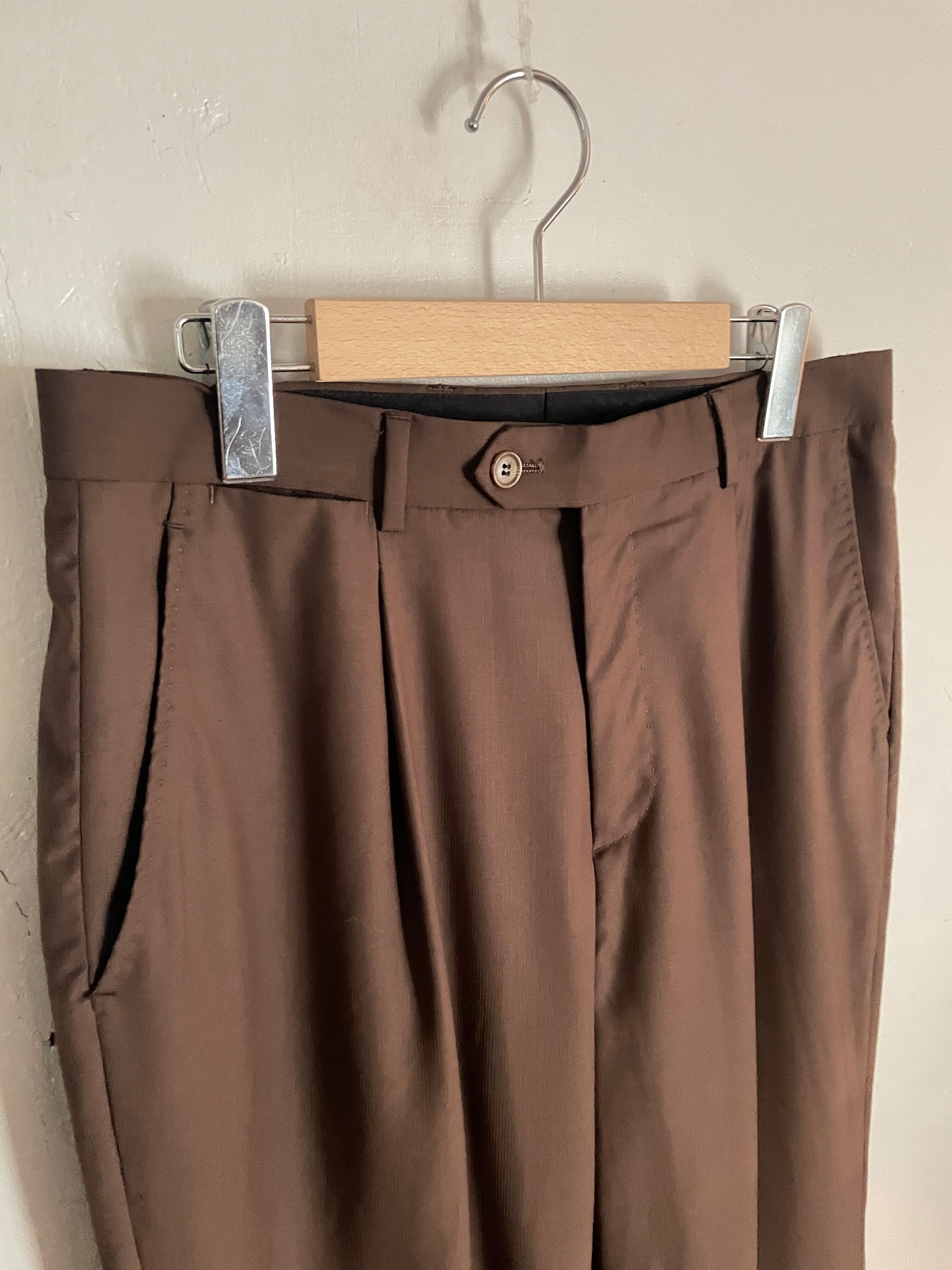 Old Brown Rayon×Polyester Tack Wide Slacks