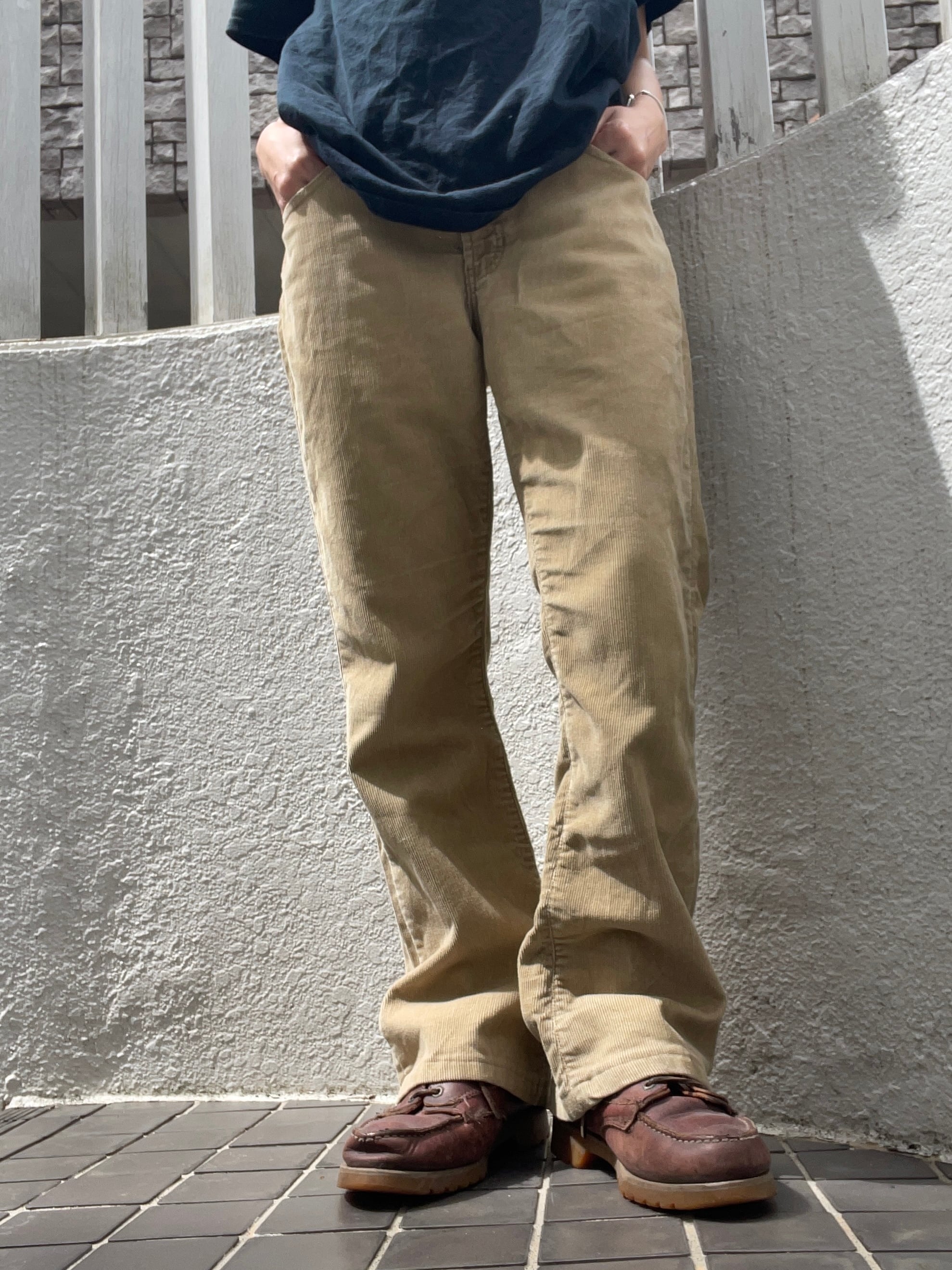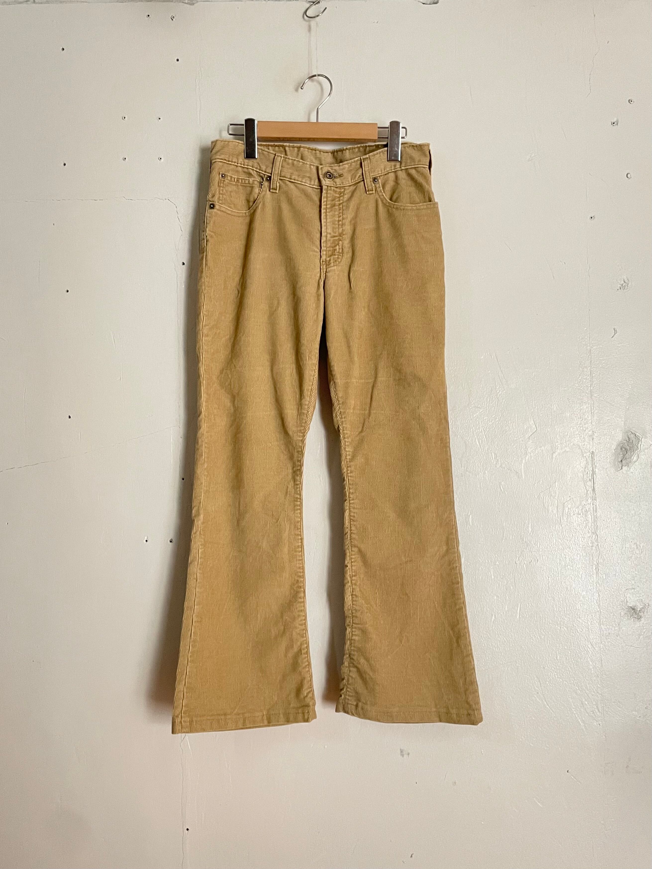 ベージュカラーのコーデュロイパンツ。程良い厚みのある生地感で、これからの秋冬シーズンにぴったり。太ももはすっきりとしたシルエットで、裾にかけて広がるフレアラインが脚長効果を演出してくれます。カジュアルなトップスはもちろん、シャツやジャケットと合わせて綺麗めにも着こなせる万能アイテムです。